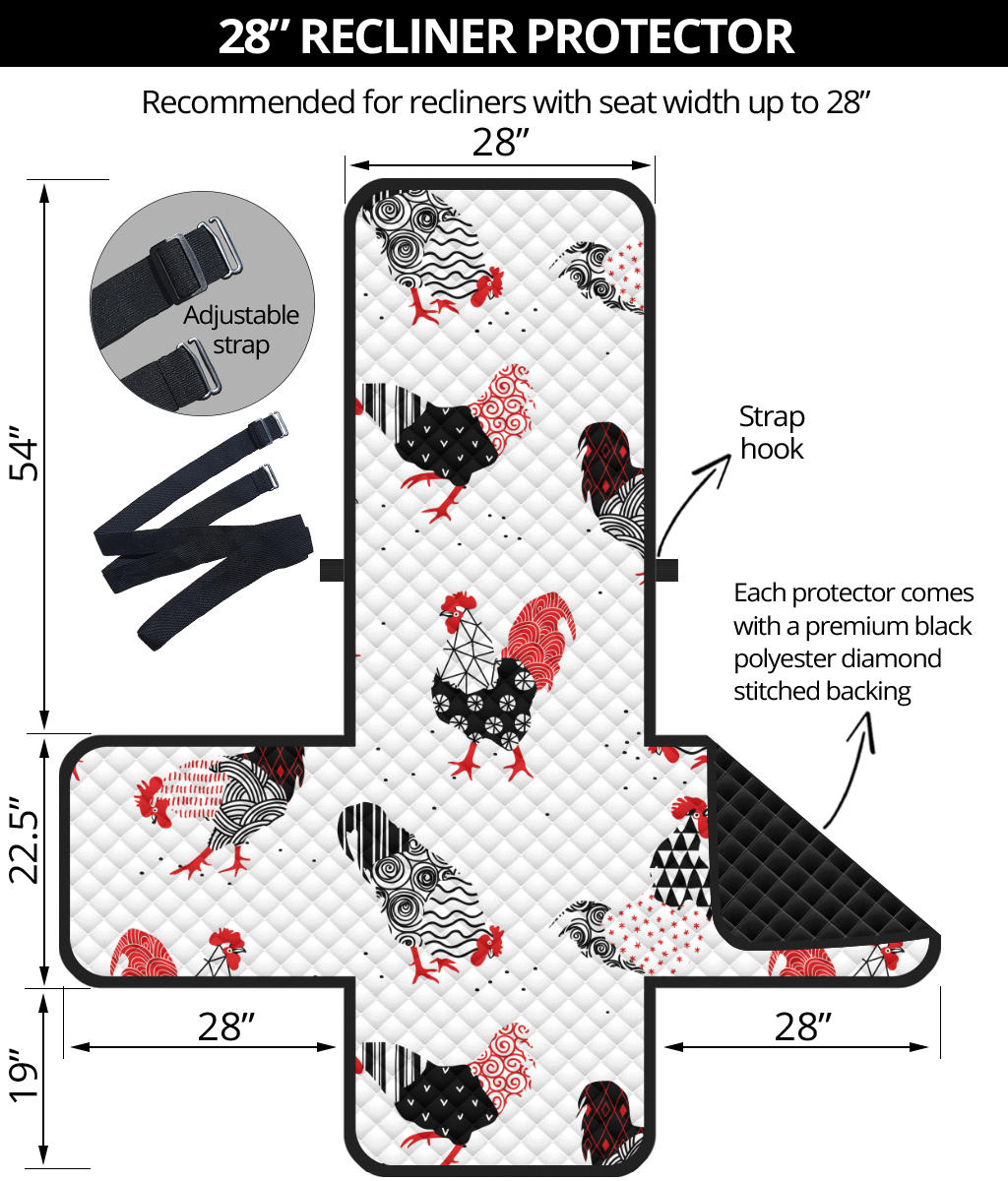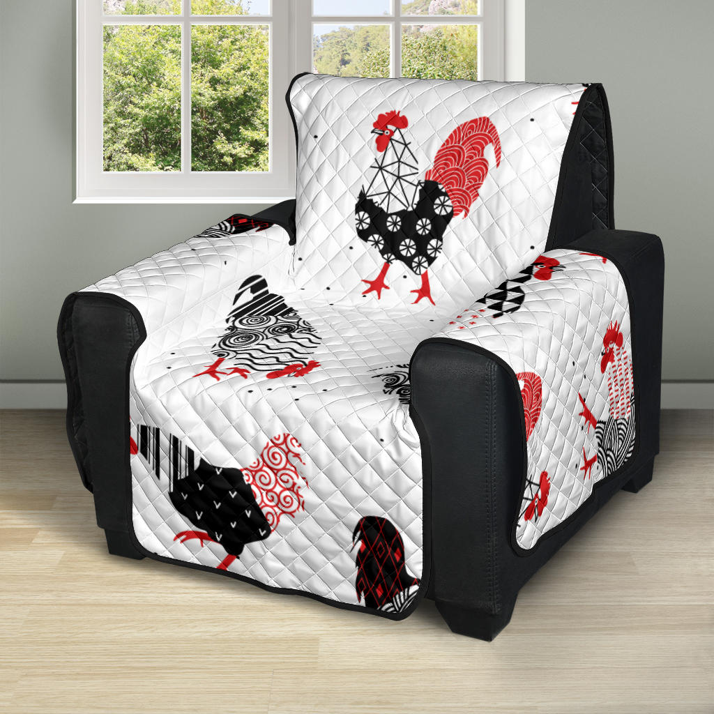 Cool rooster chicken cock floral ornament background Recliner Cover Protector