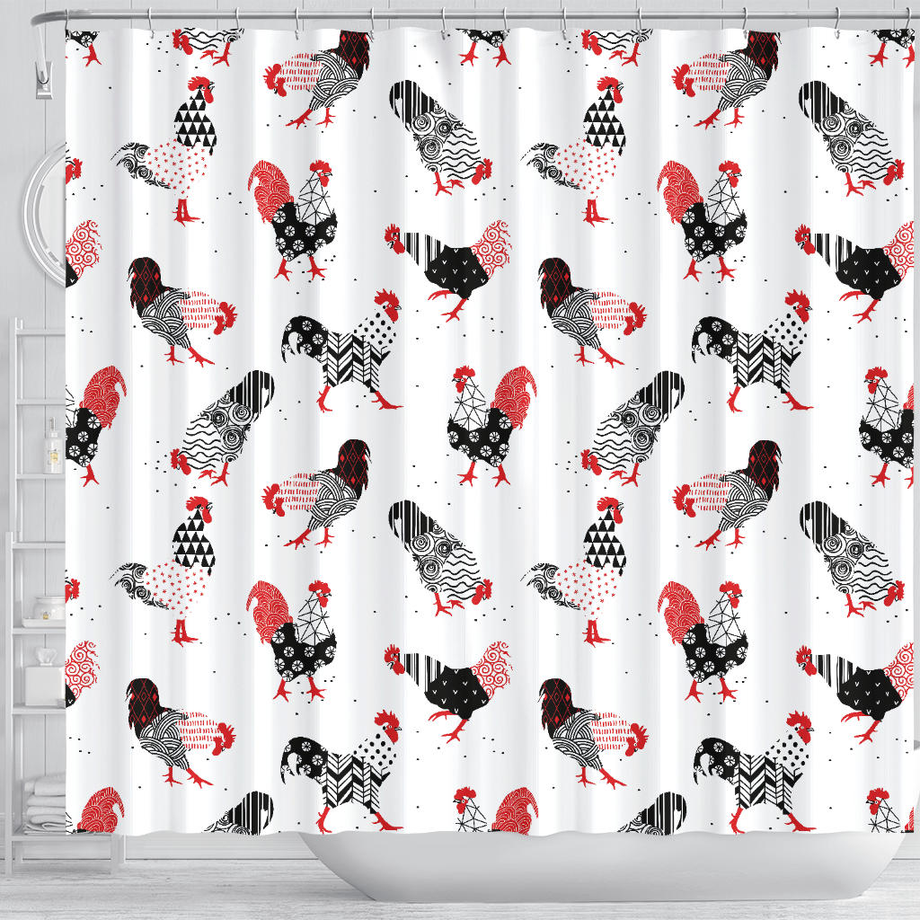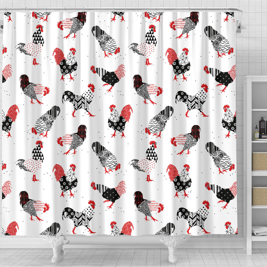 Cool Rooster Chicken Cock Floral Ornament Background Shower Curtain Fulfilled In US