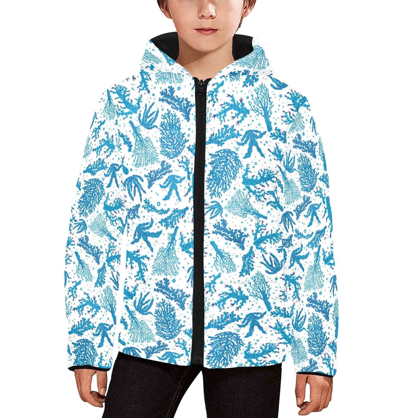 Coral Reef Pattern Print Design 01 Kids' Boys' Girls' Padded Hooded Jacket