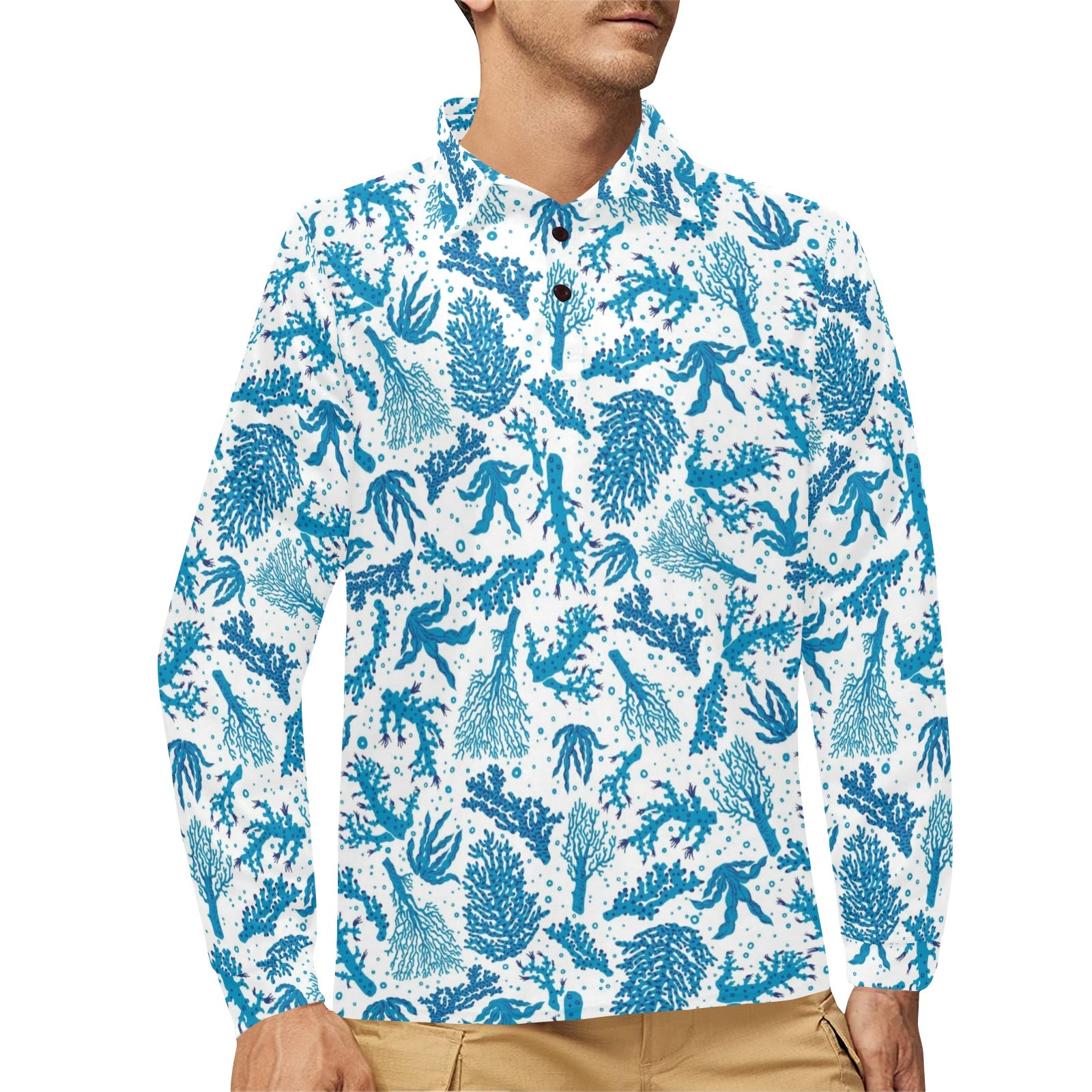 Coral Reef Pattern Print Design 01 Men's Long Sleeve Polo Shirt