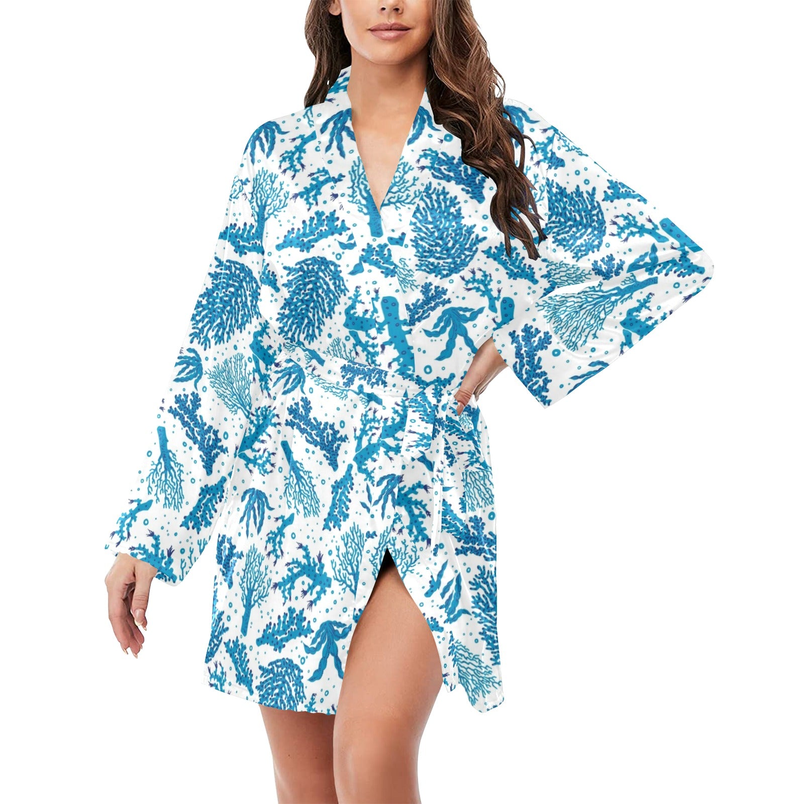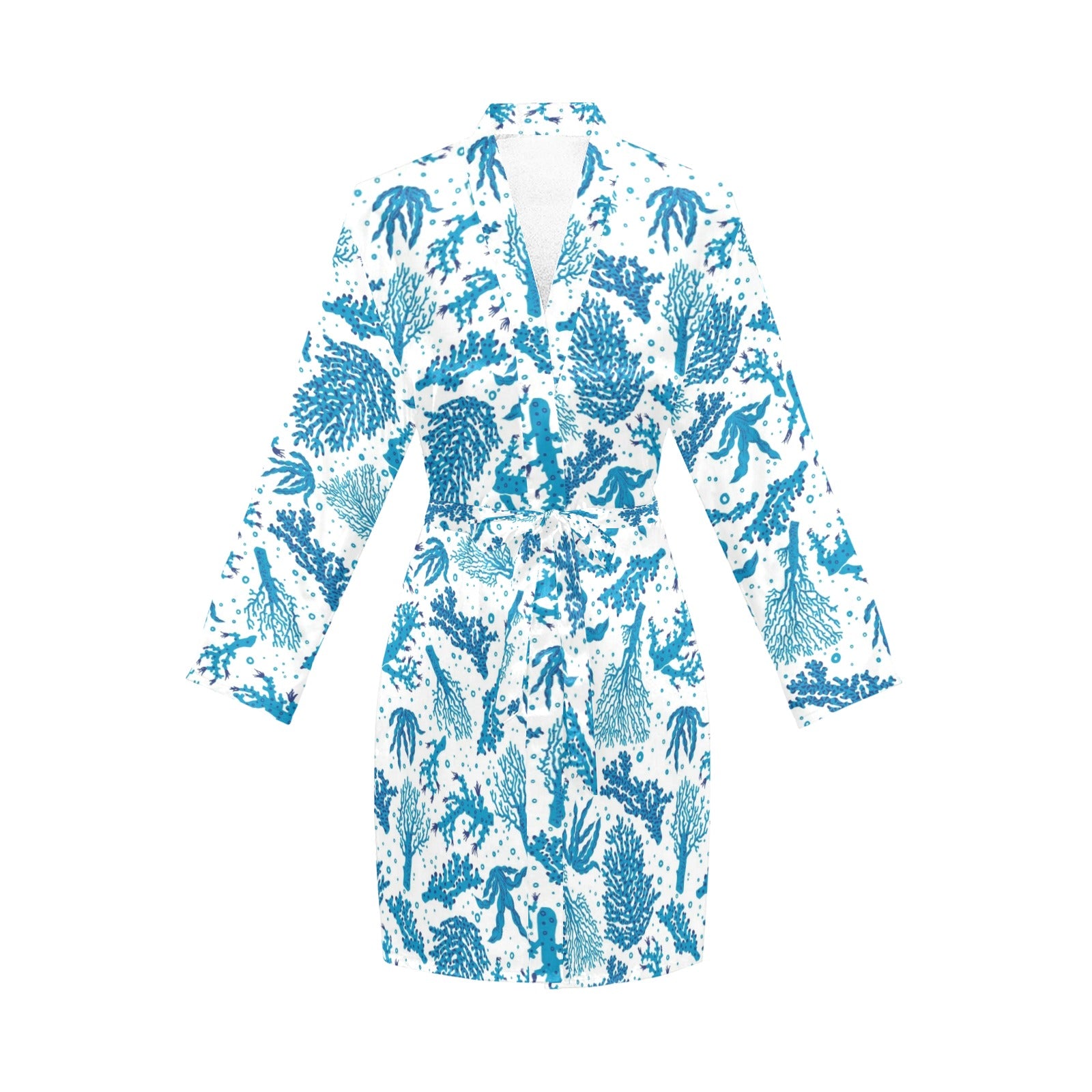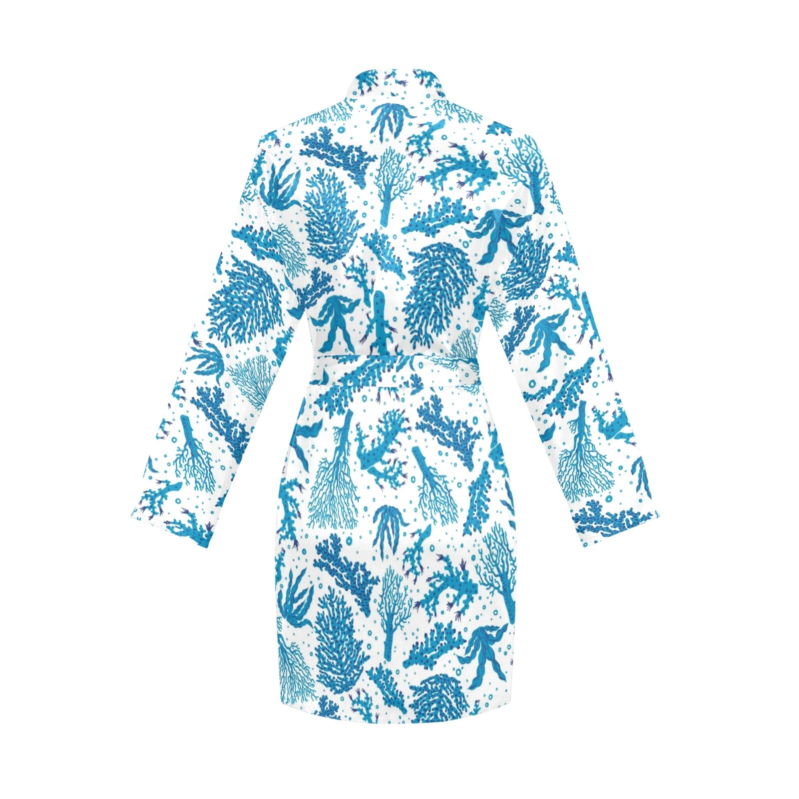 Coral Reef Pattern Print Design 01 Women's Long Sleeve Belted Night Robe