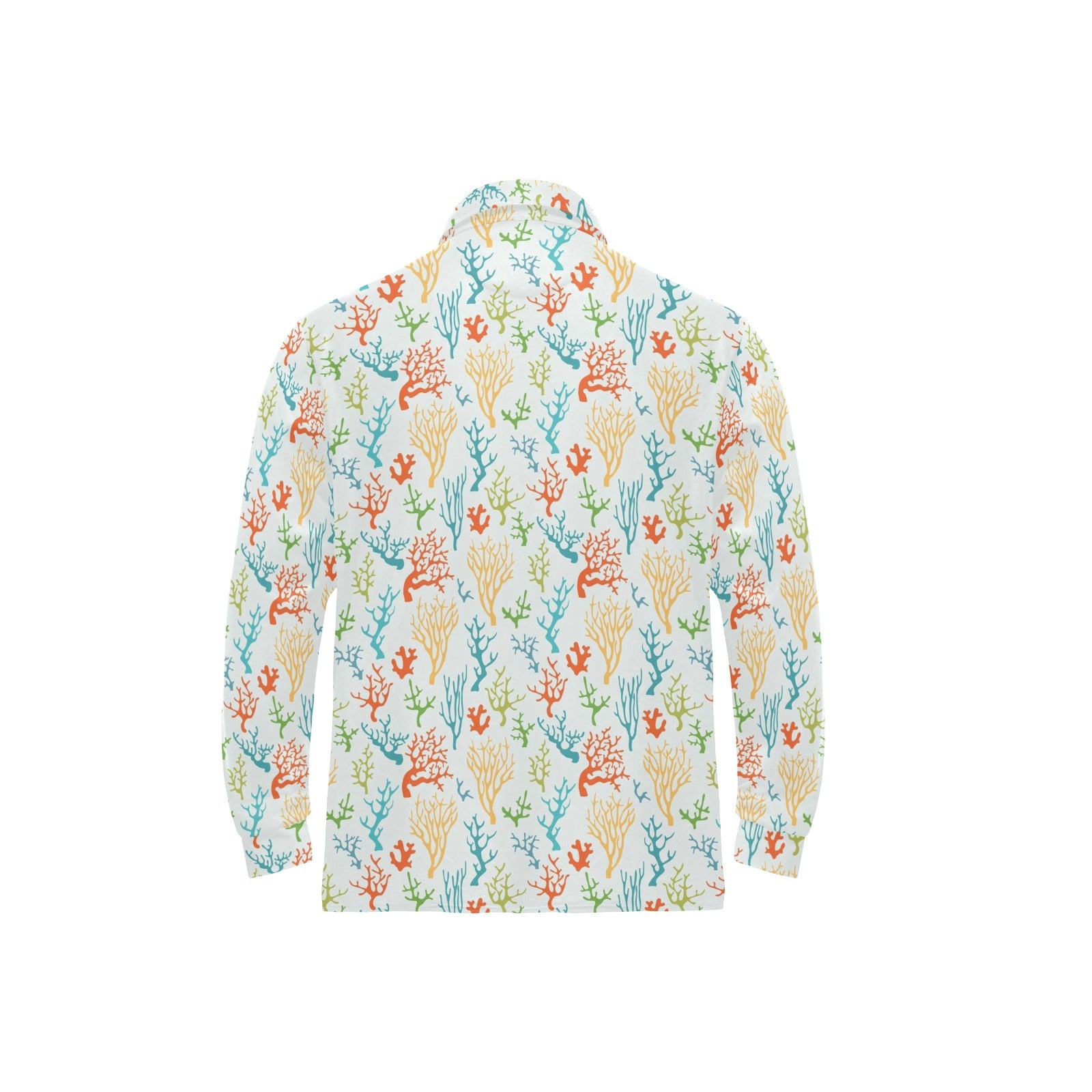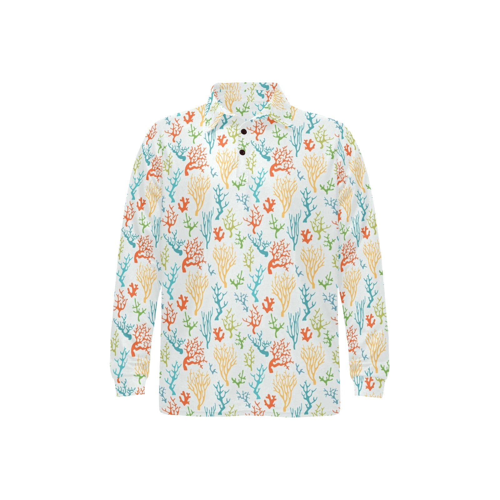 Coral Reef Pattern Print Design 02 Men's Long Sleeve Polo Shirt