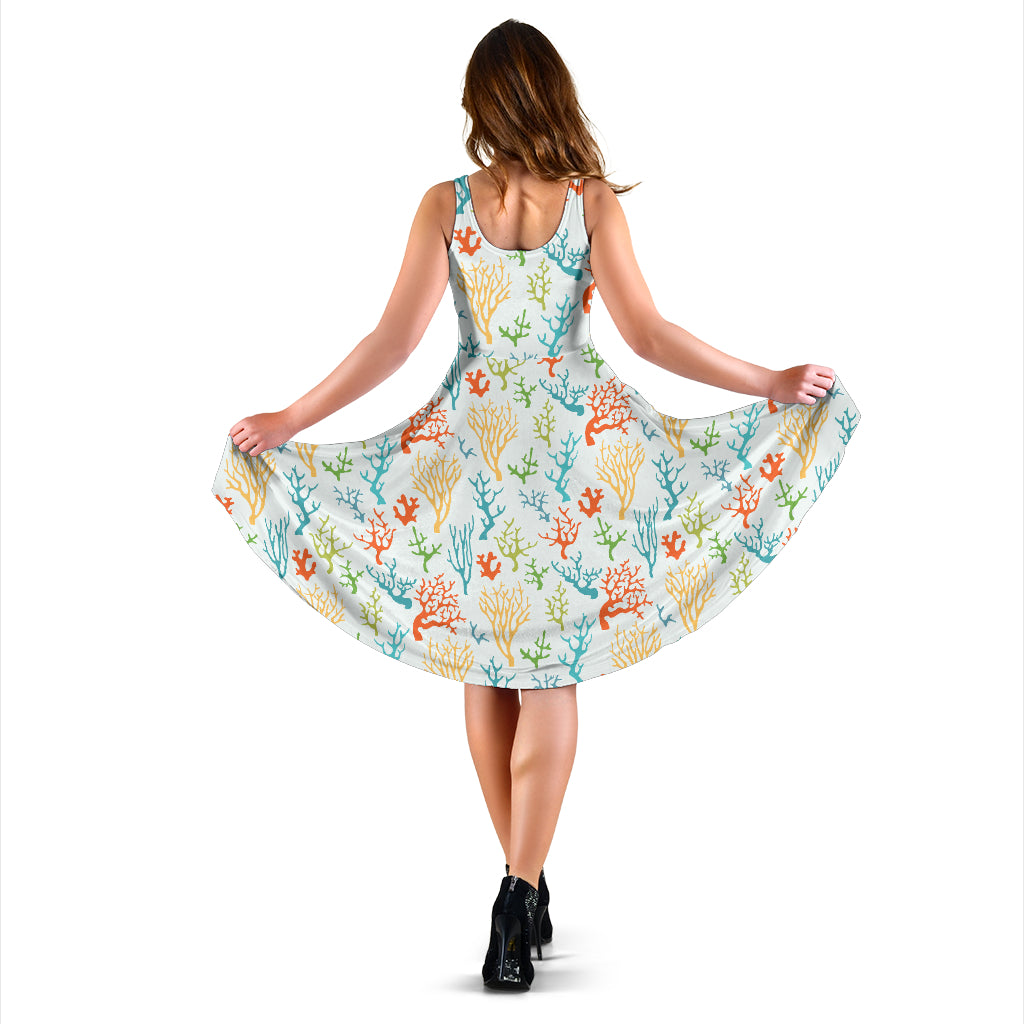 Coral Reef Pattern Print Design 02 Sleeveless Midi Dress