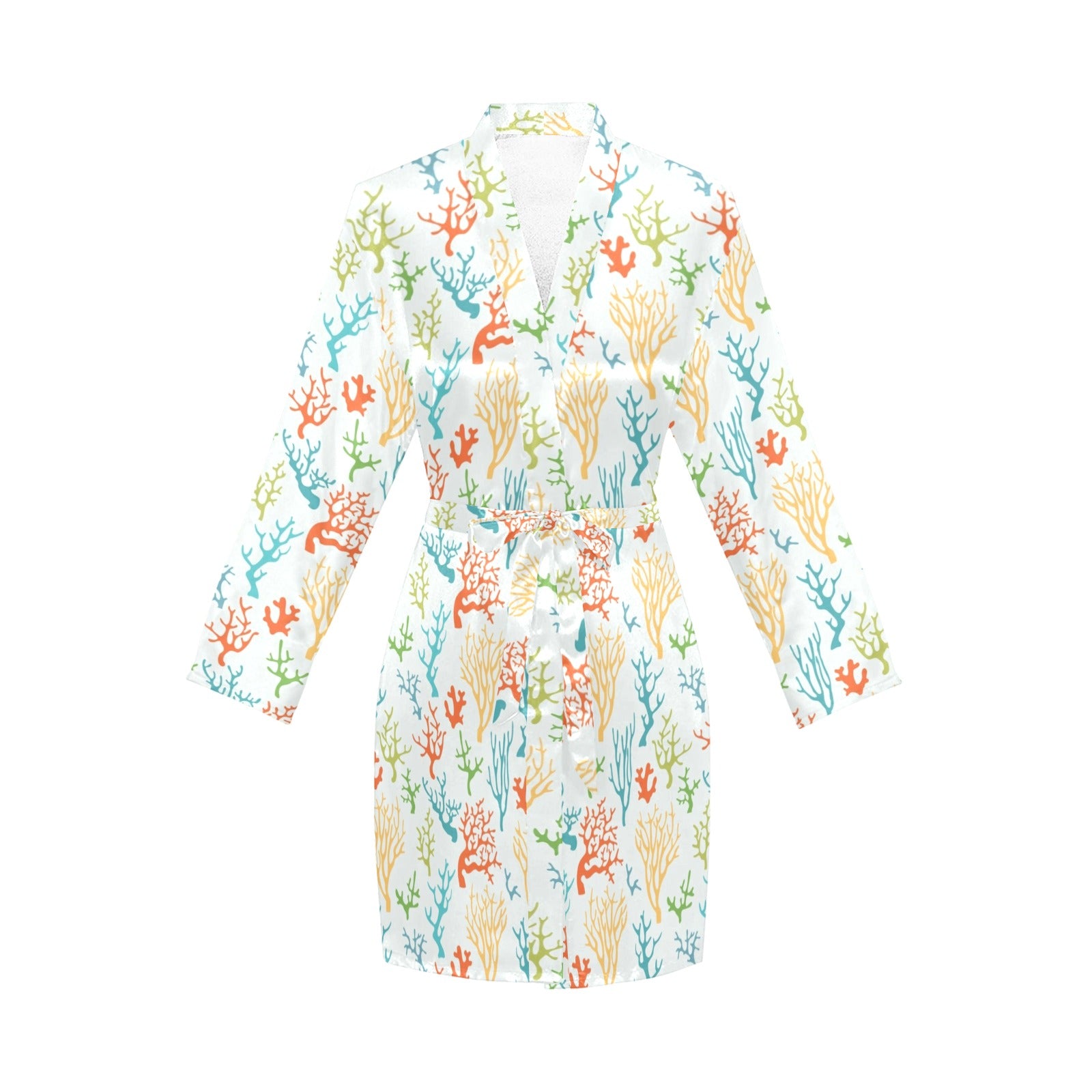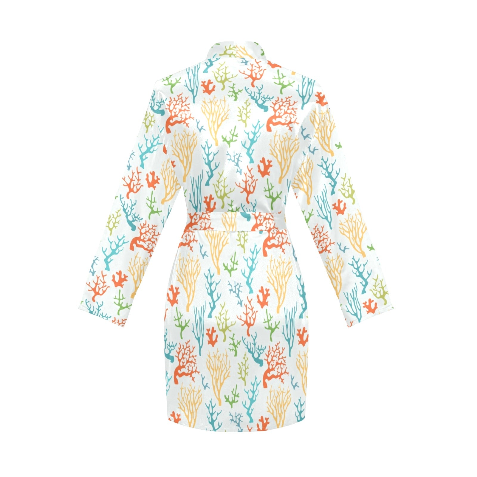 Coral Reef Pattern Print Design 02 Women's Long Sleeve Belted Night Robe