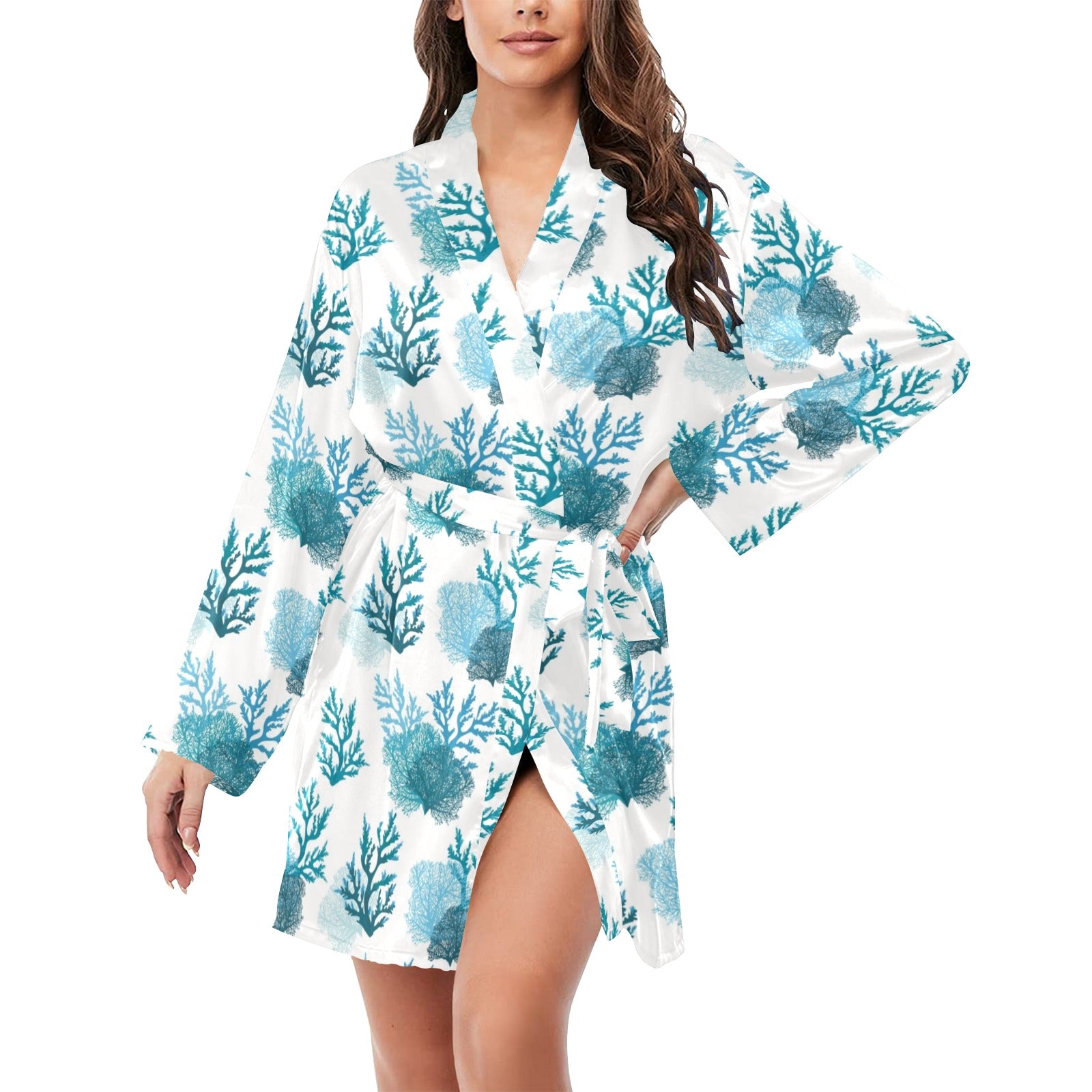 Coral Reef Pattern Print Design 04 Women's Long Sleeve Belted Night Robe