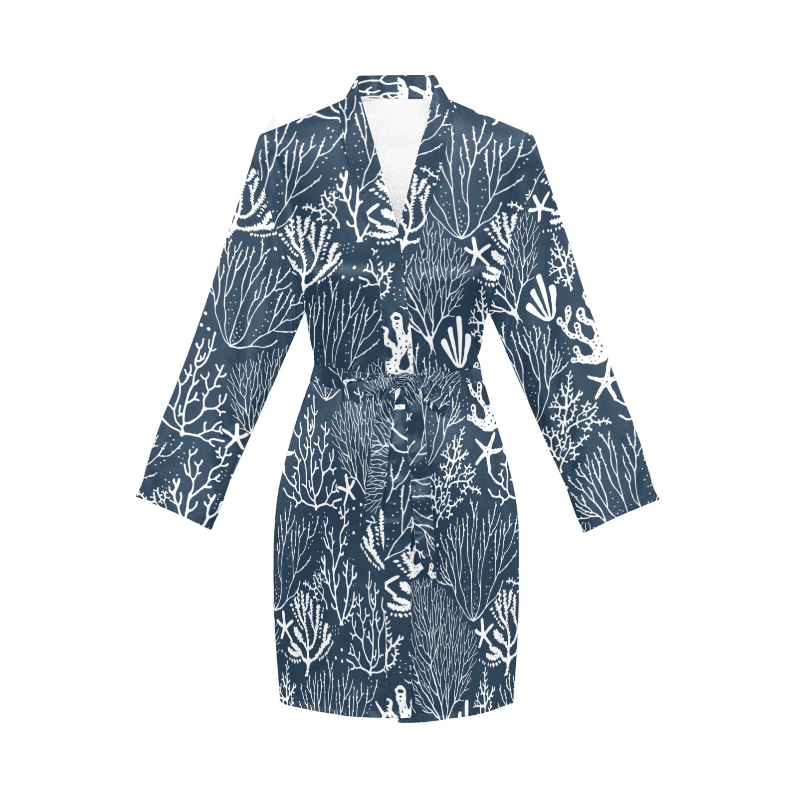 Coral Reef Pattern Print Design 05 Women's Long Sleeve Belted Night Robe