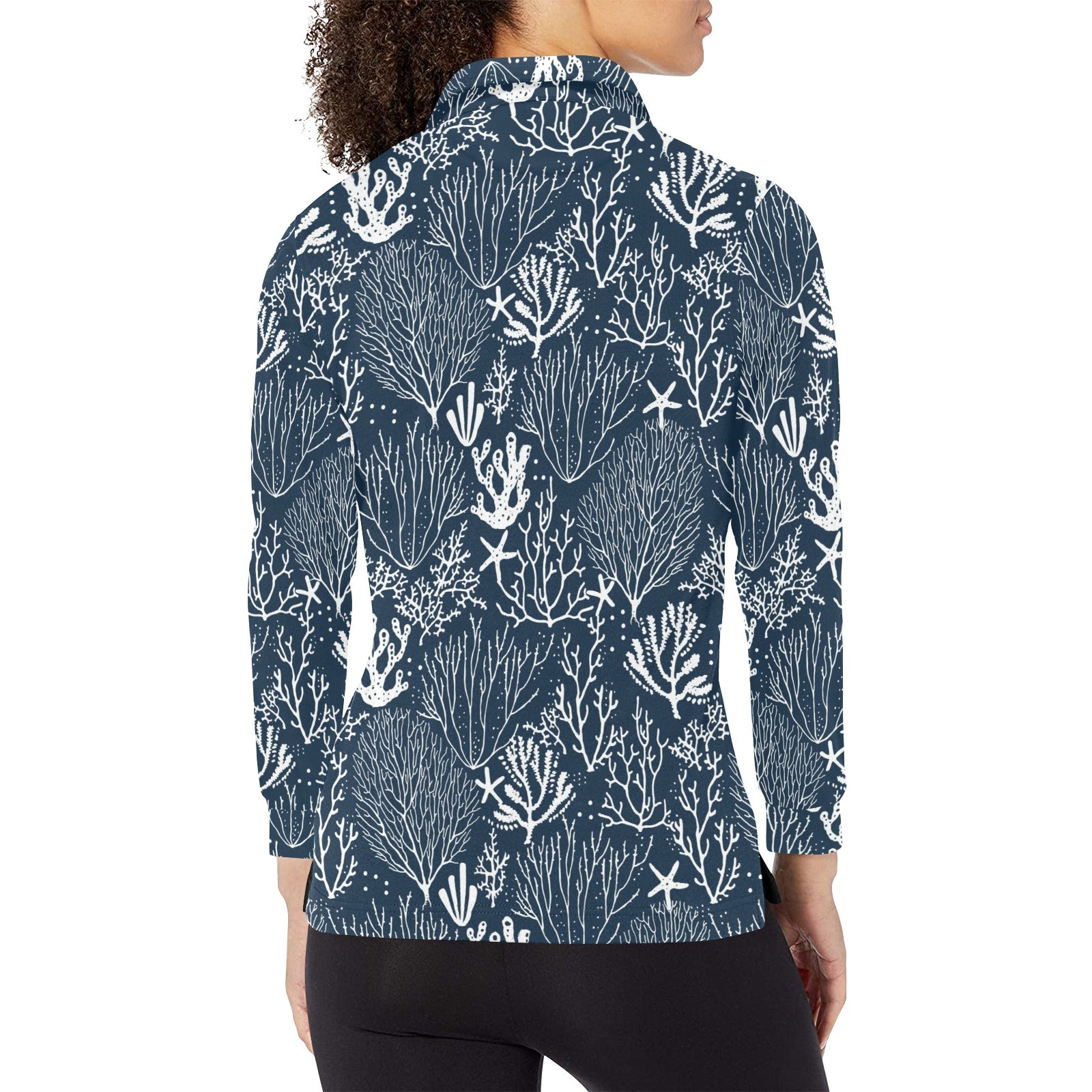Coral Reef Pattern Print Design 05 Women's Long Sleeve Polo Shirt