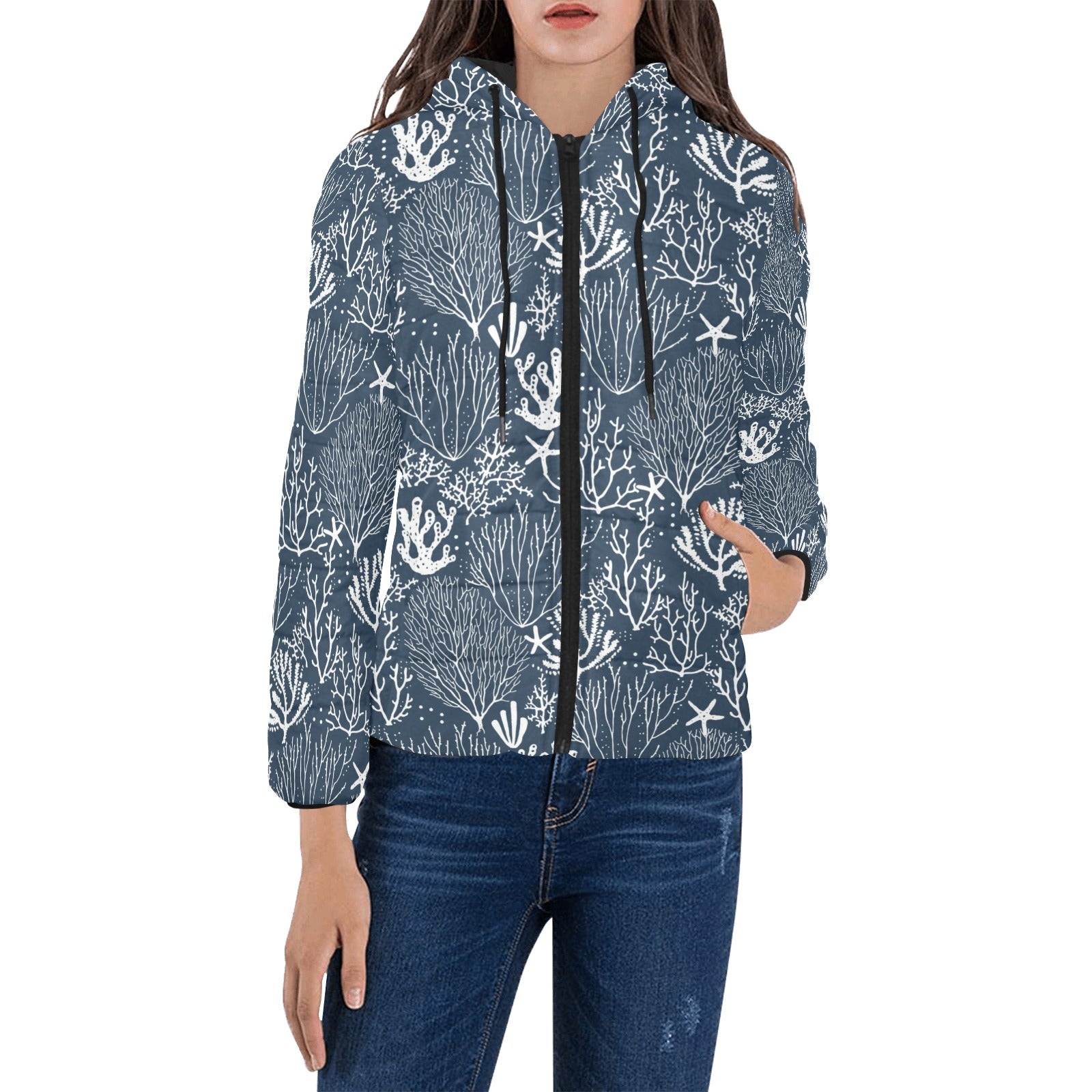Coral Reef Pattern Print Design 05 Women's Padded Hooded Jacket
