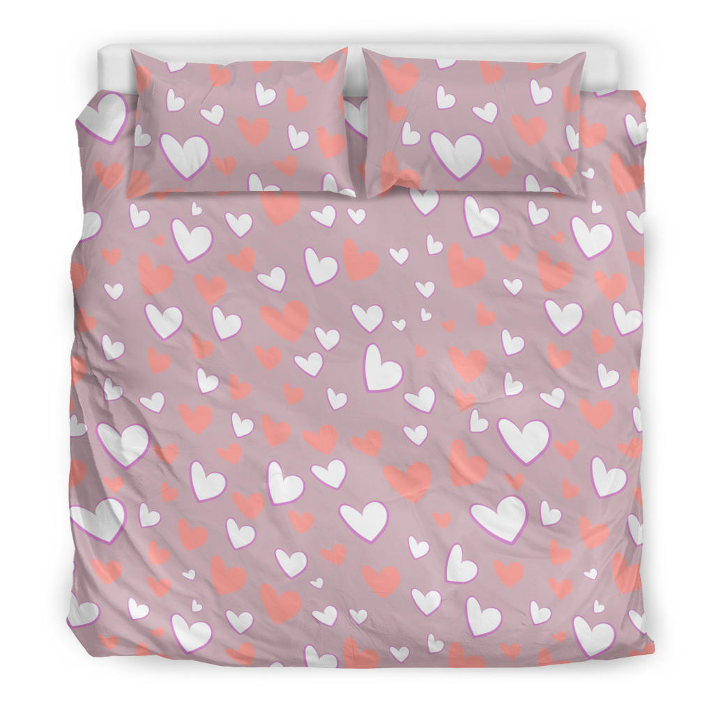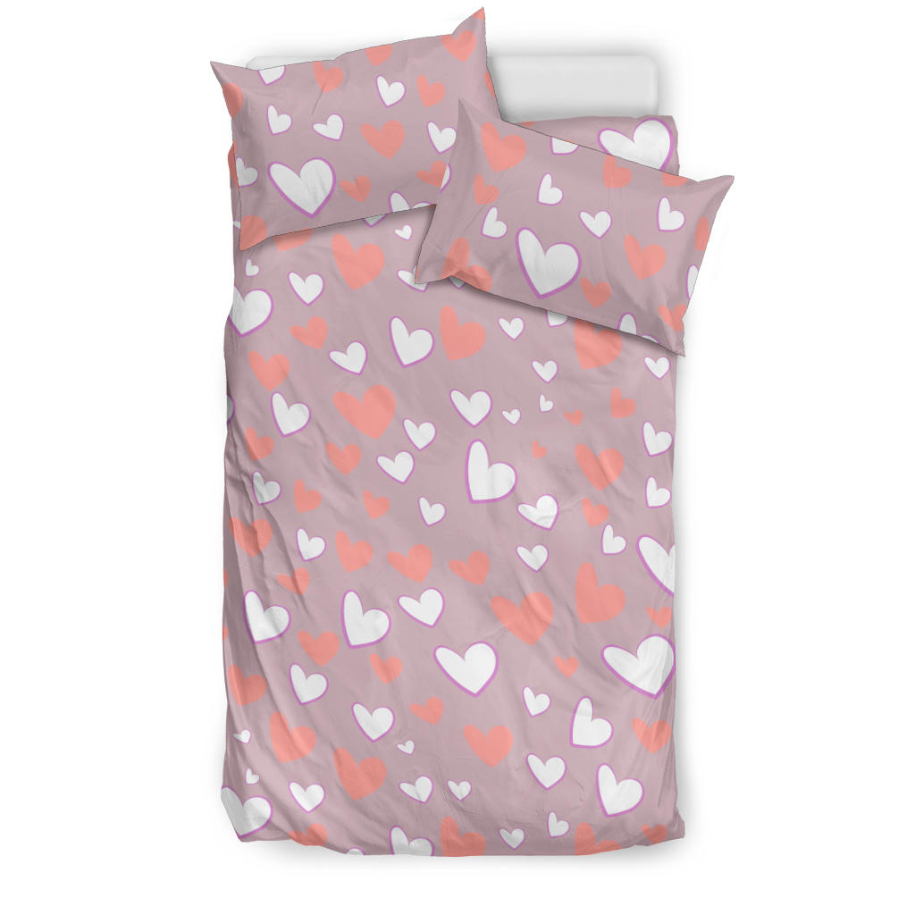 coral white heart pattern Bedding Set is a uniqued design and limited item. It made to order, hand printed, and sewn with love in our factory.