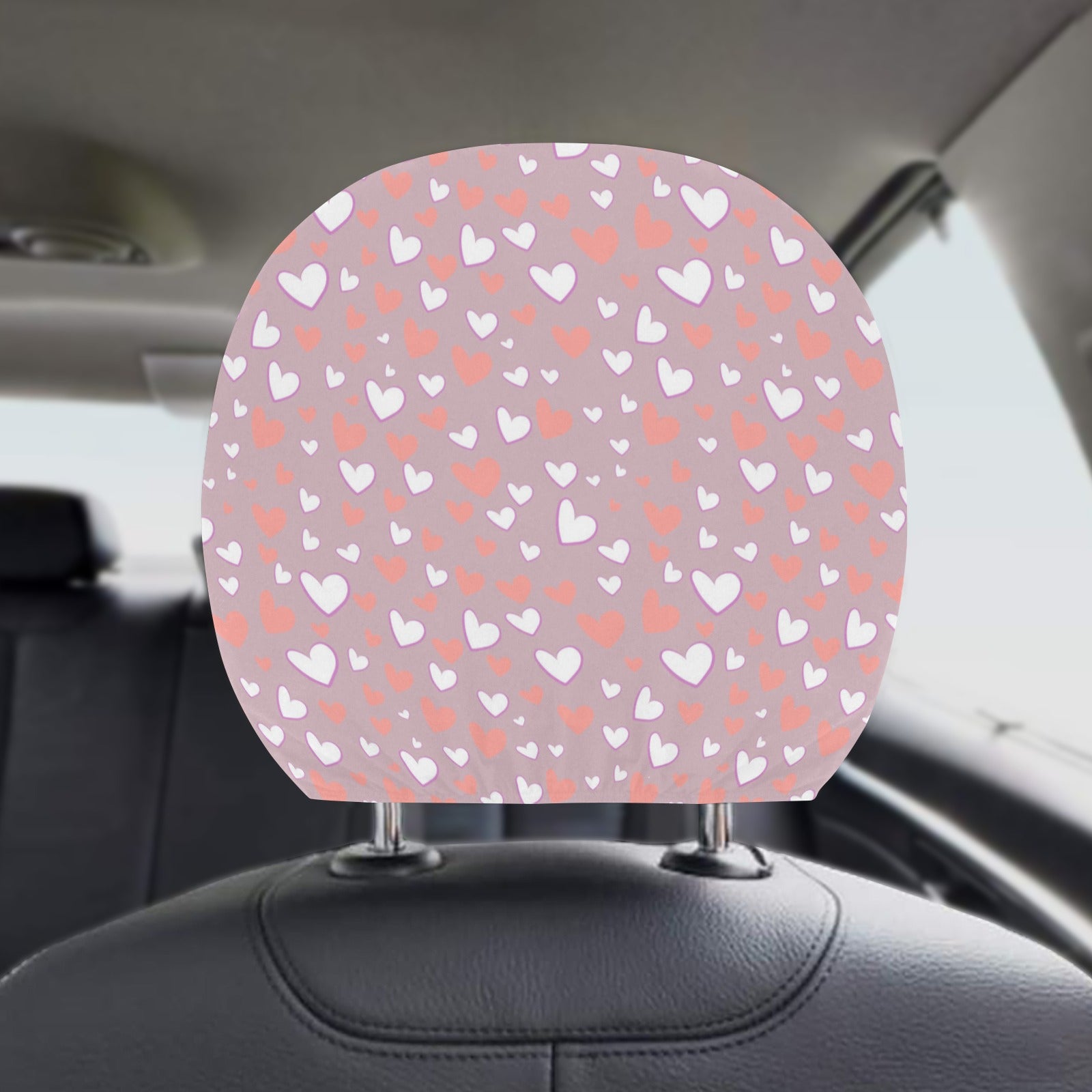 coral white heart pattern Car Headrest Cover
