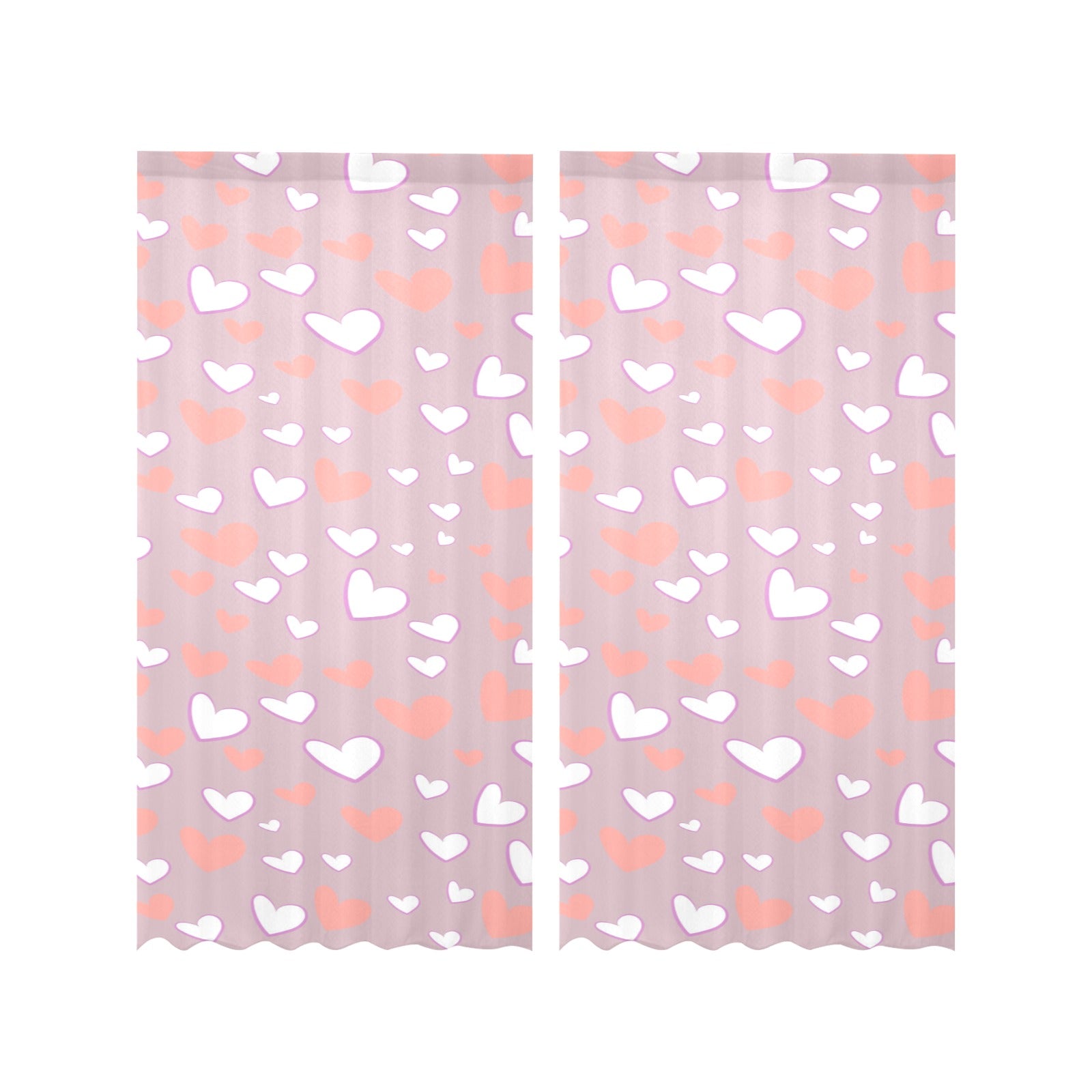 coral white heart pattern Gauze Curtain