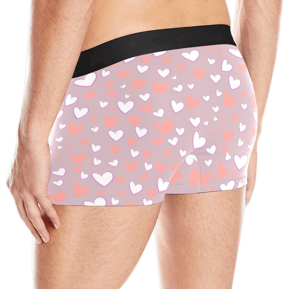 coral white heart pattern Men's All Over Print Boxer Briefs Men's Underwear