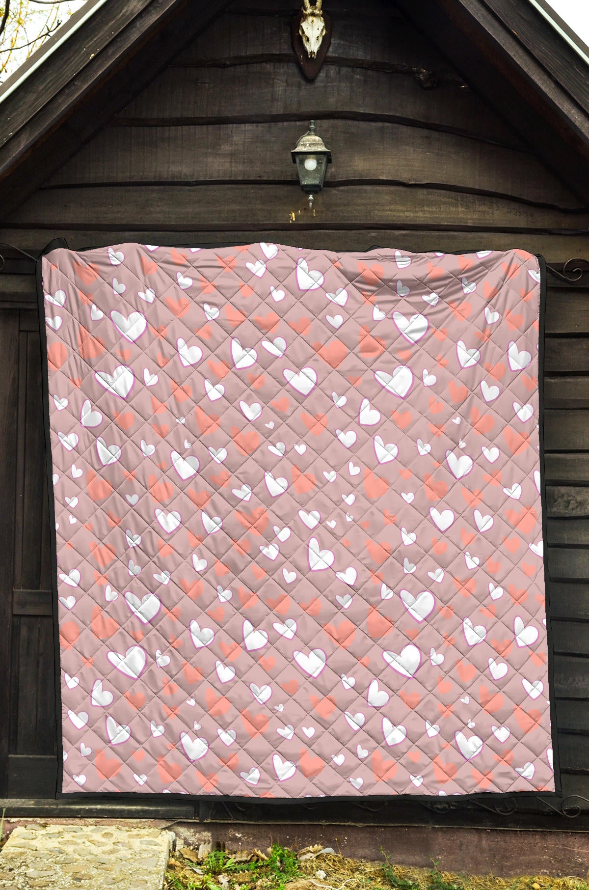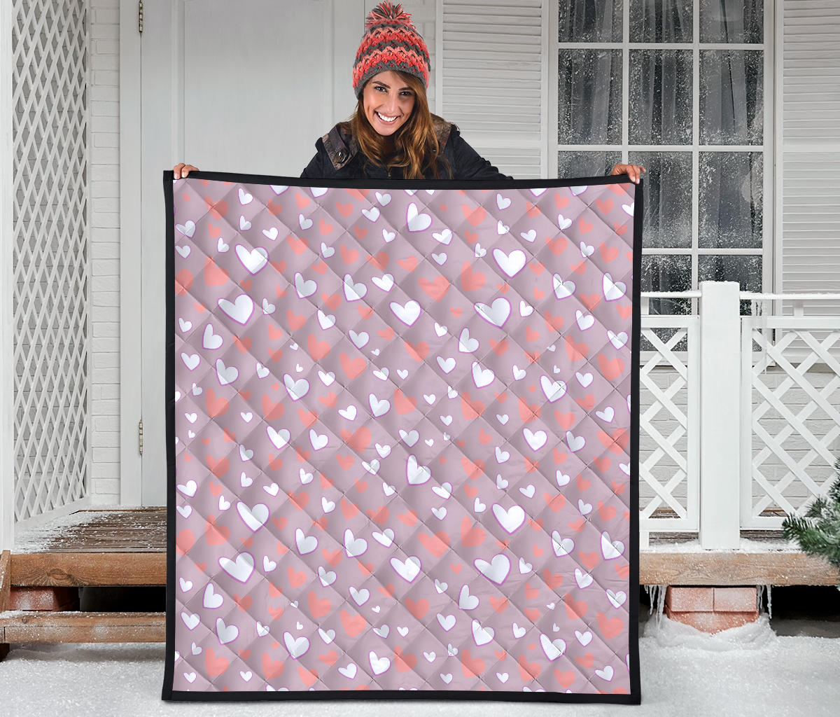 Coral White Heart Pattern Premium Quilt is a uniqued design and limited item. It made to order, hand printed, and sewn with love in our factory.