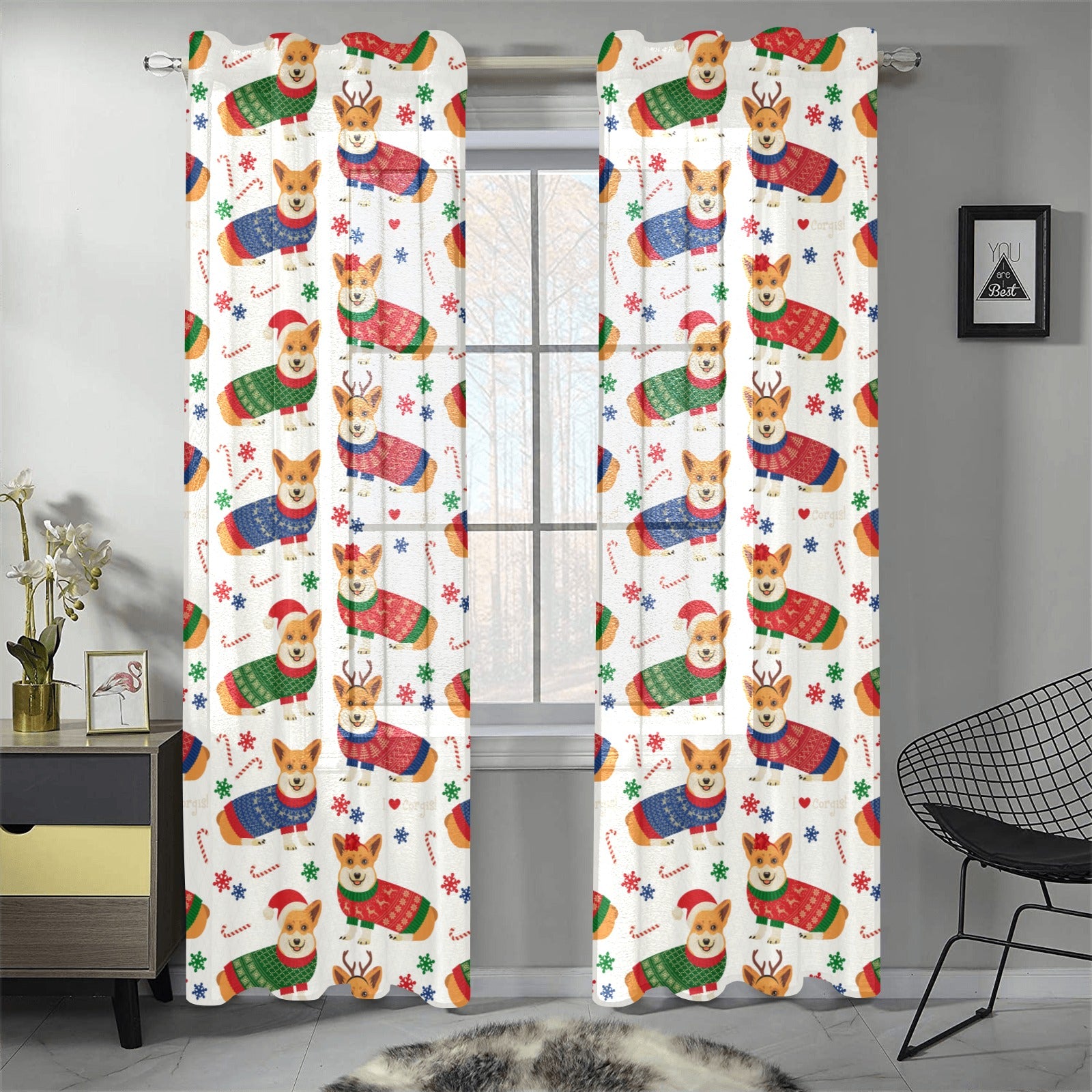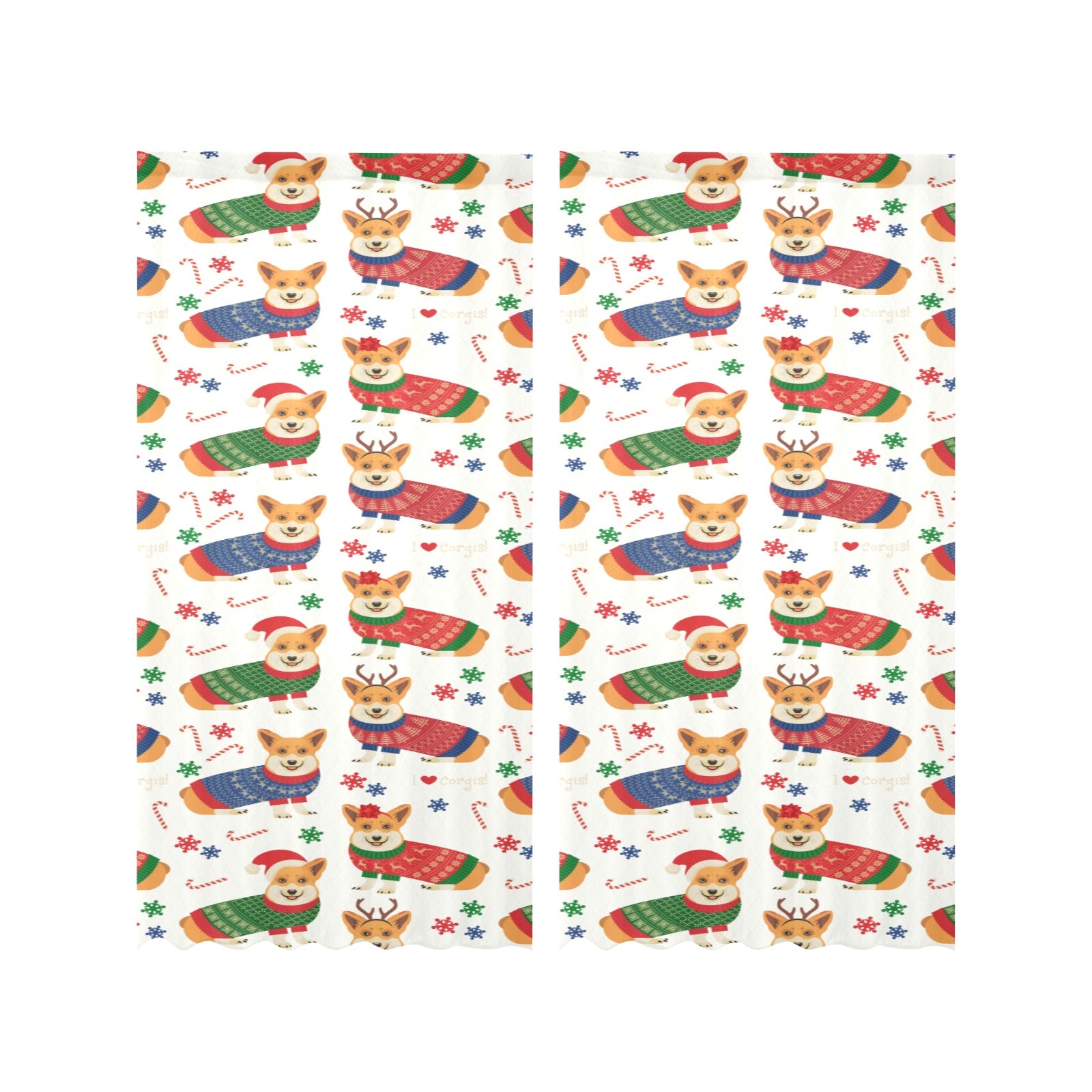 Corgi Christmas Pattern Gauze Curtain