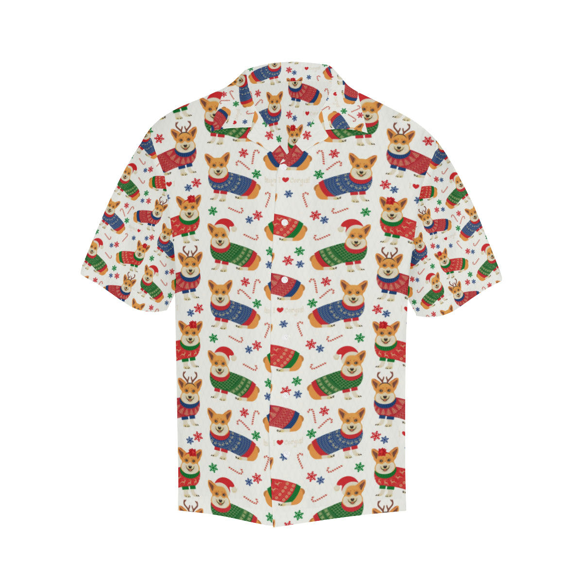 Corgi Christmas Pattern Men's All Over Print Hawaiian Shirt is a uniqued design and limited item. It made to order, hand printed, and sewn with love in our factory.