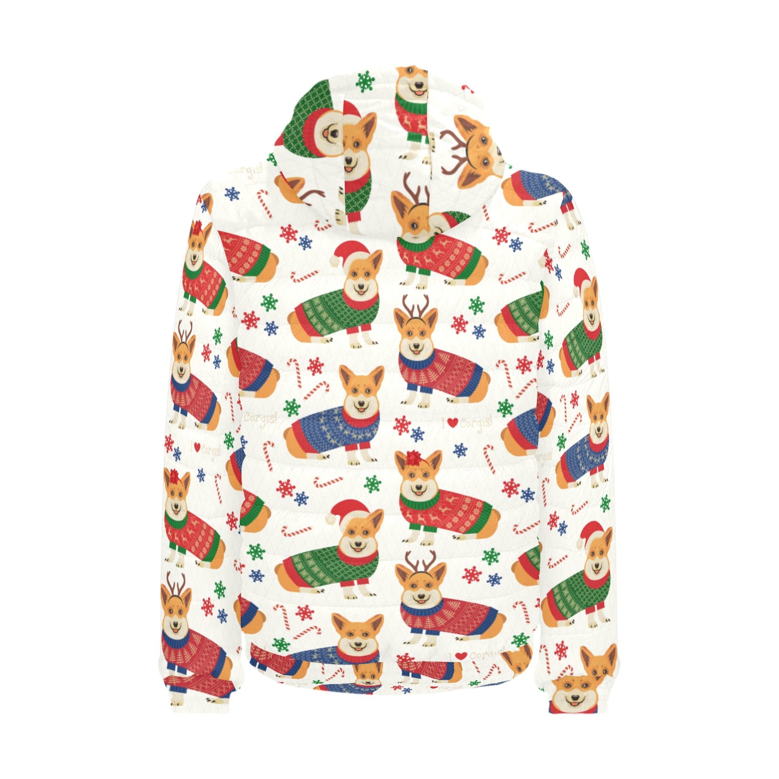 Corgi Christmas Pattern Men's Padded Hooded Jacket