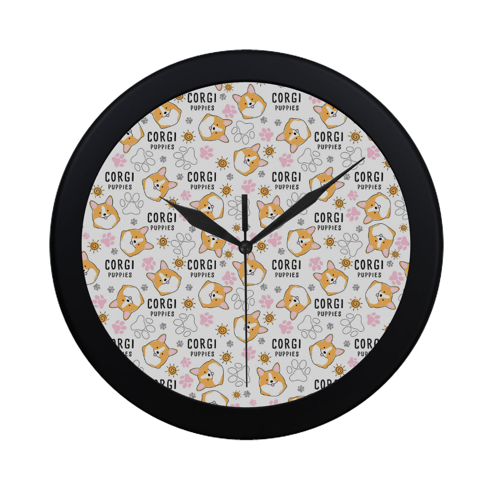 Corgi Dog Pattern Elegant Black Wall Clock is a uniqued design and limited item. It made to order, hand printed, and sewn with love in our factory.