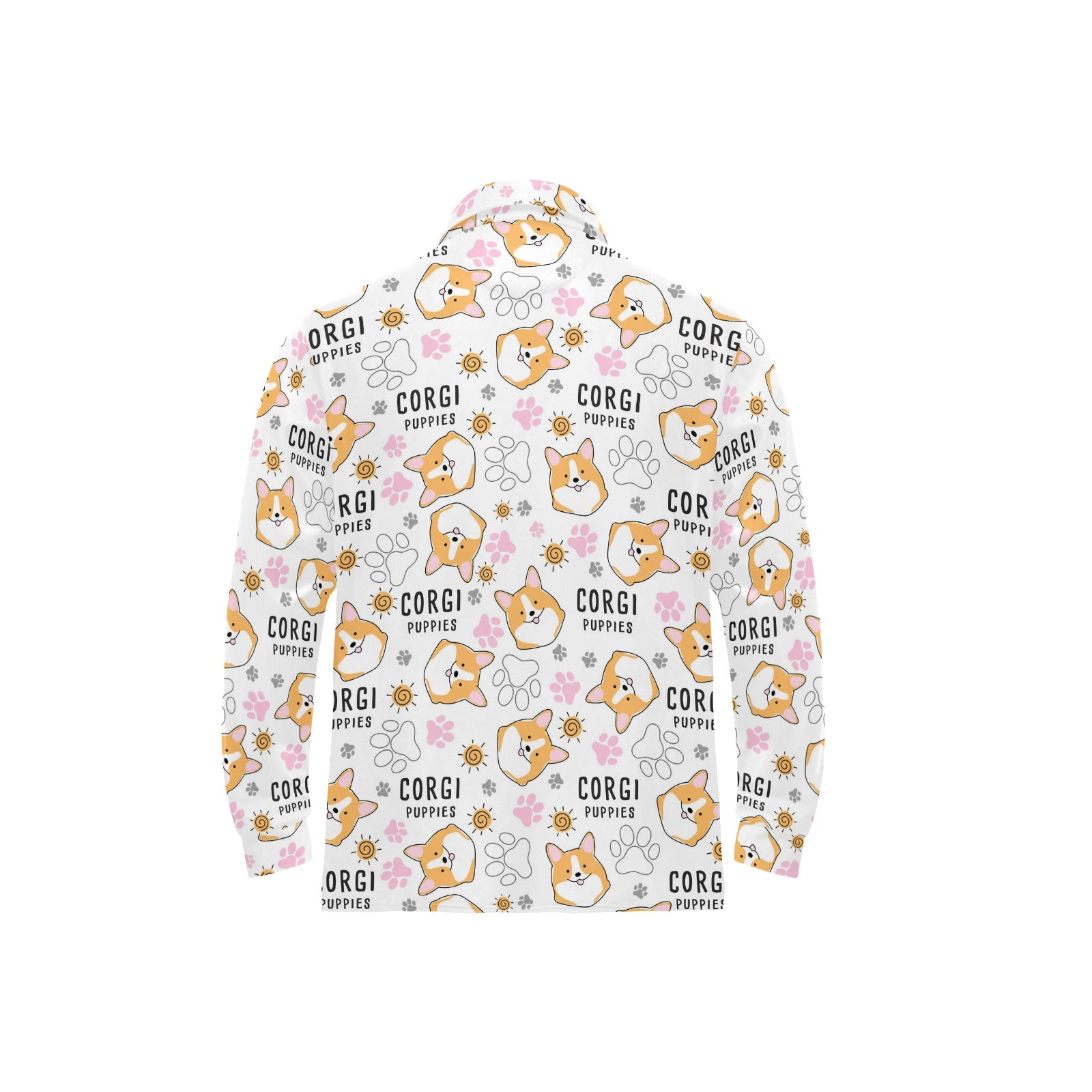 Corgi Dog Pattern Men's Long Sleeve Polo Shirt
