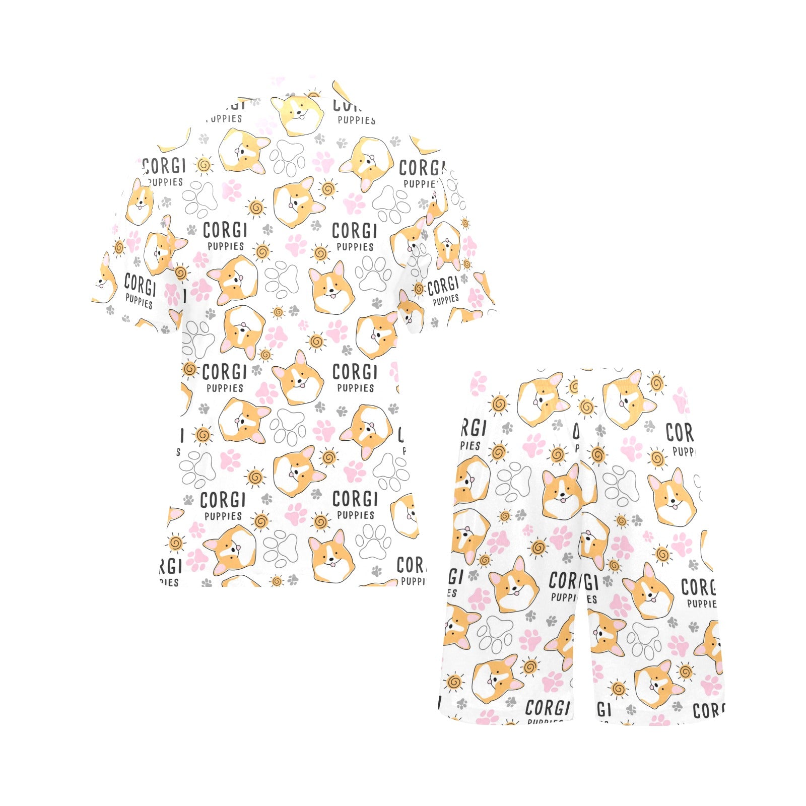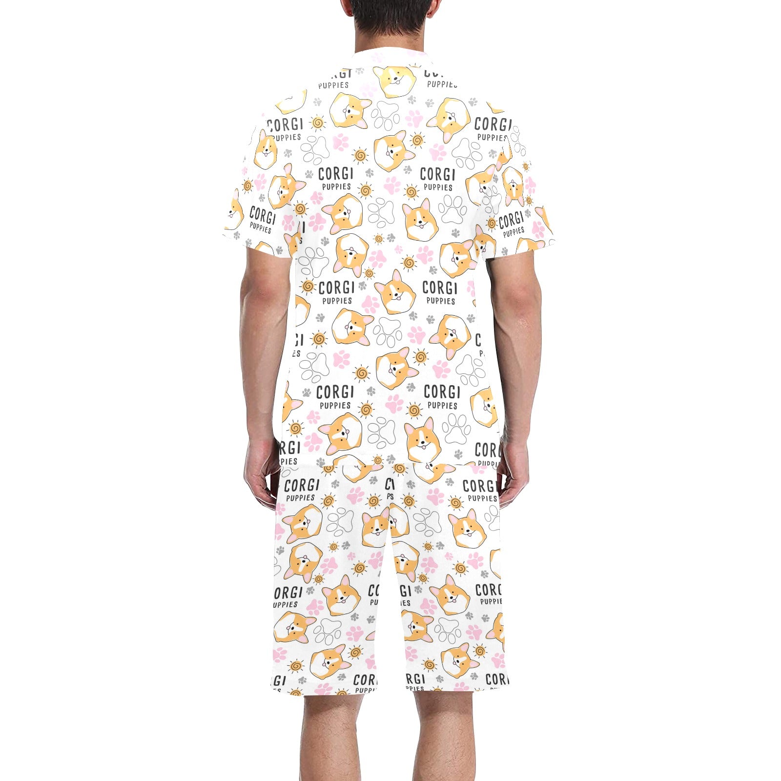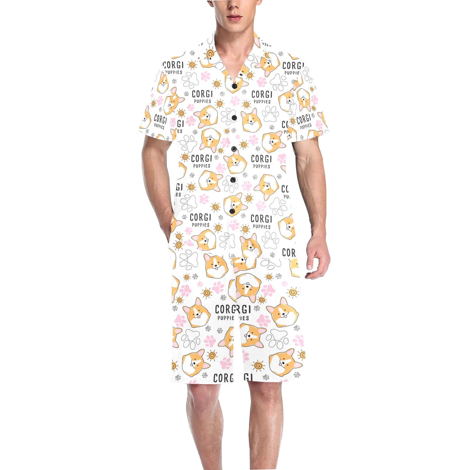 Corgi Dog Pattern Men's V-Neck Short Pajama Set