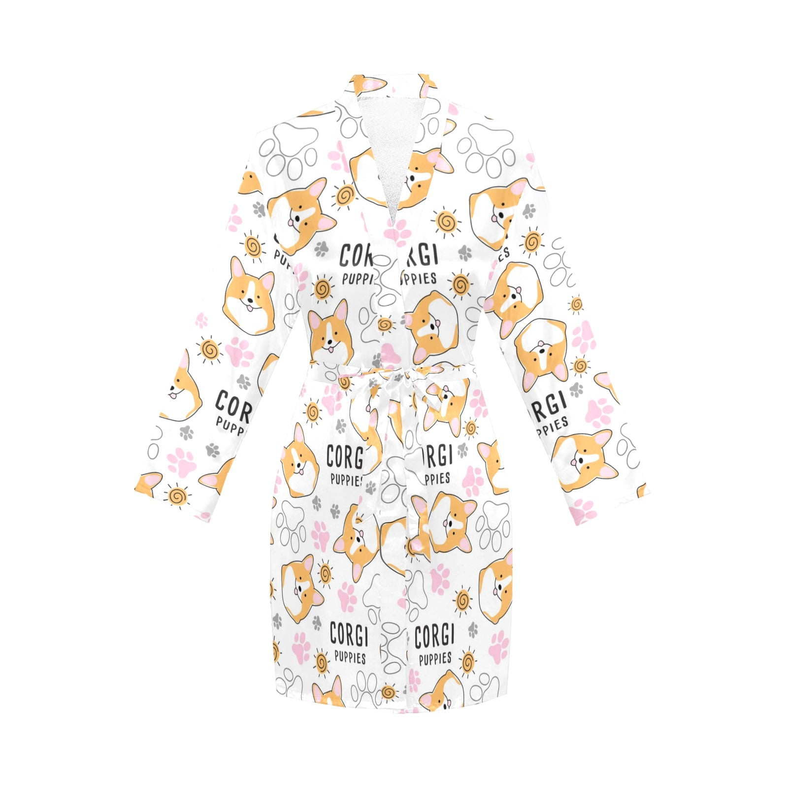 Corgi Dog Pattern Women's Long Sleeve Belted Night Robe