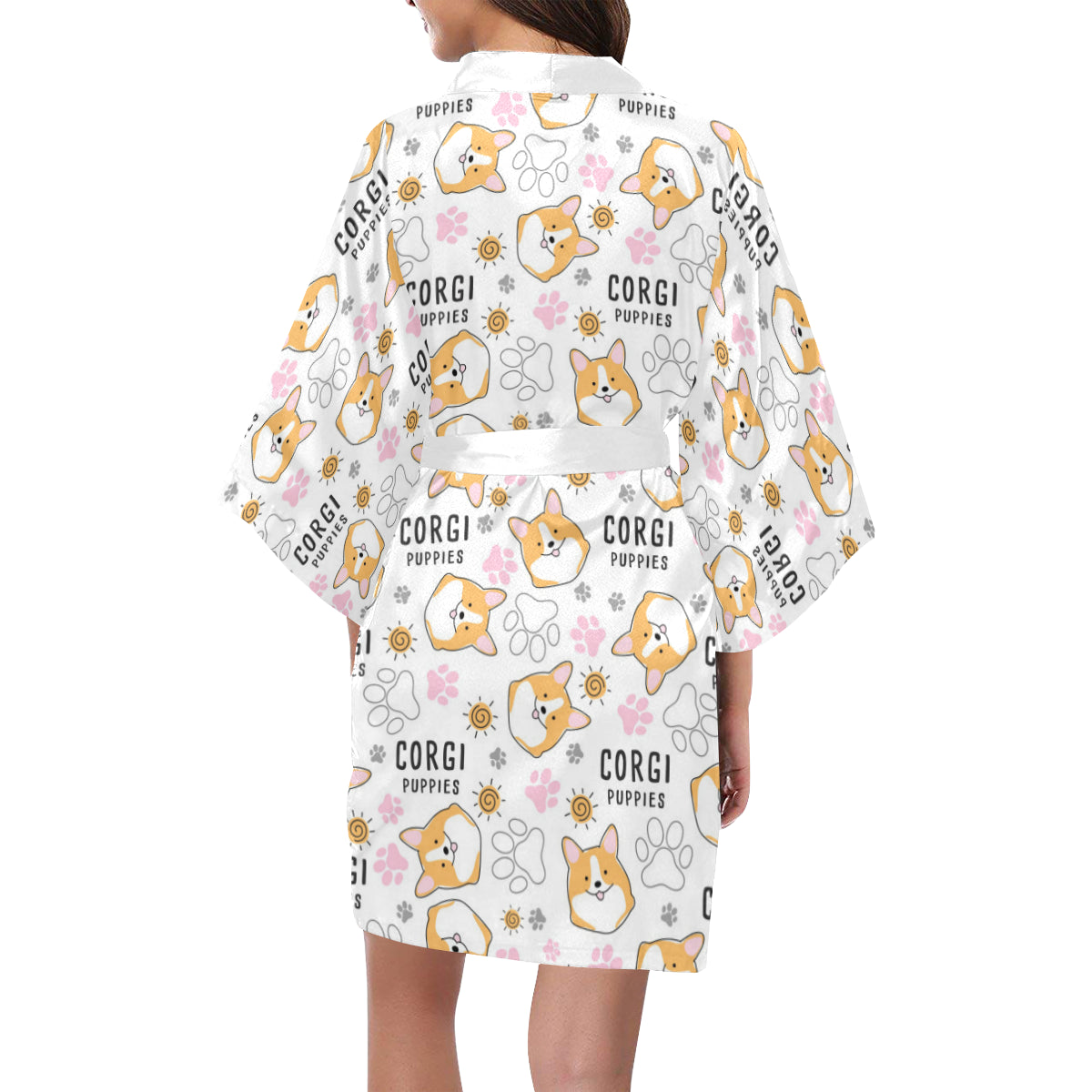 Corgi Dog Pattern Women's Short Kimono Robe is a uniqued design and limited item. It made to order, hand printed, and sewn with love in our factory.