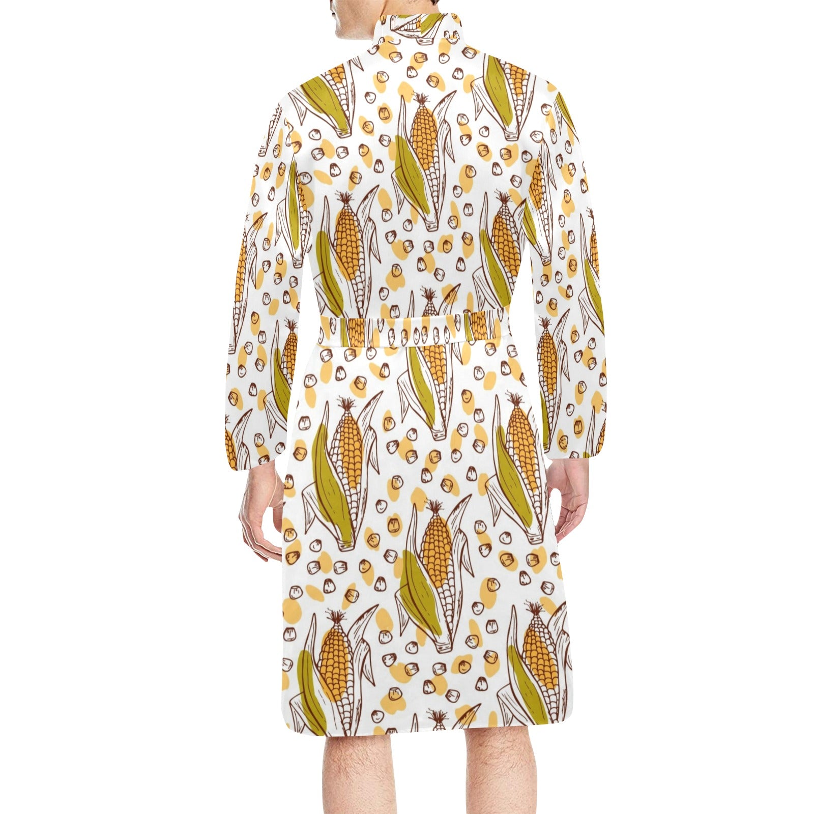 Corn Pattern Print Design 02 Men's Long Sleeve Belted Night Robe