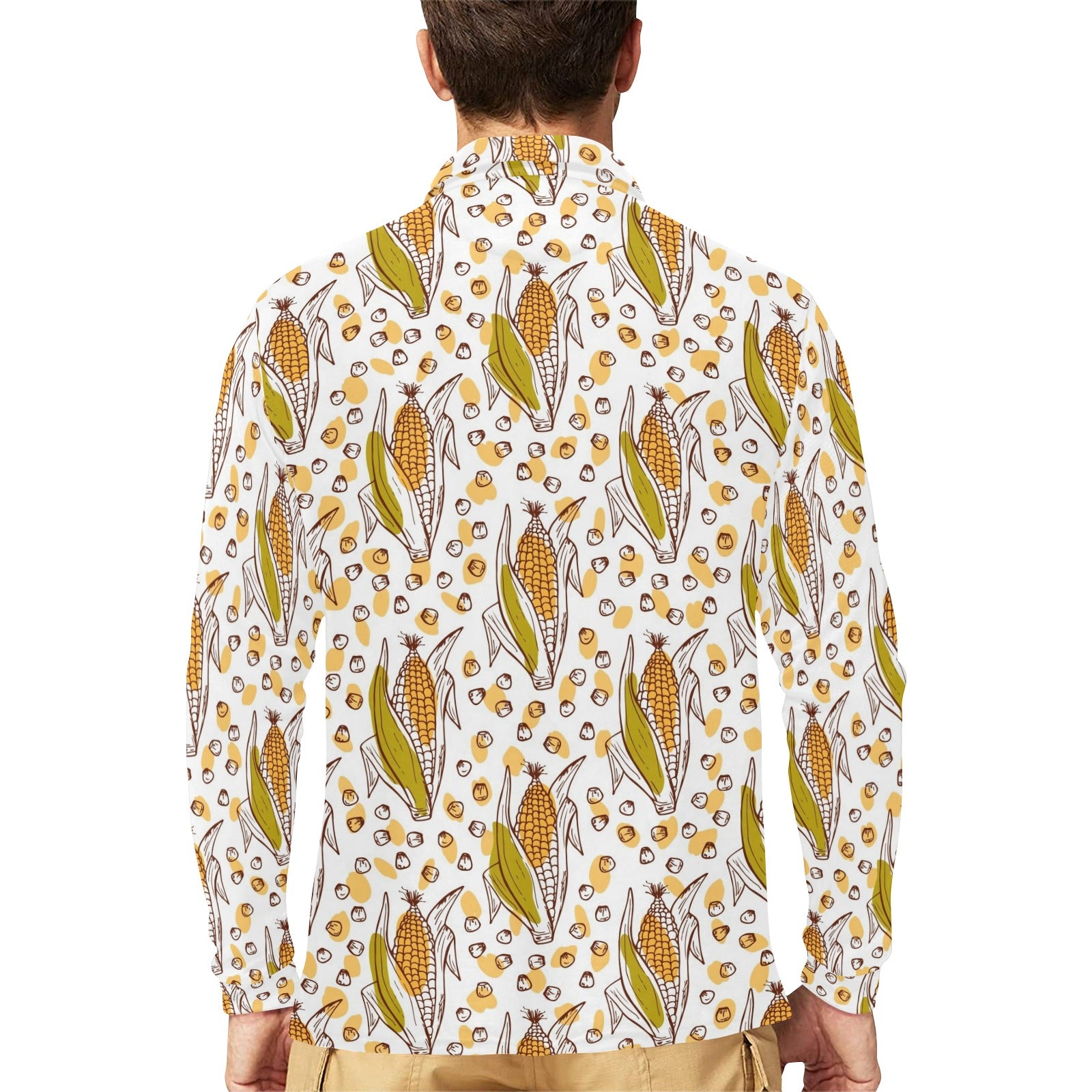 Corn Pattern Print Design 02 Men's Long Sleeve Polo Shirt