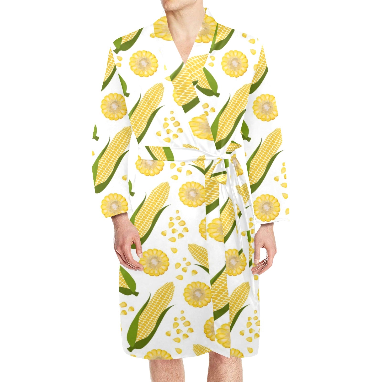 Corn Pattern Print Design 05 Men's Long Sleeve Belted Night Robe