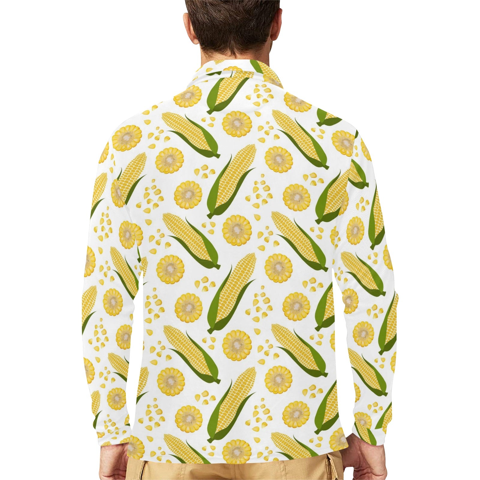 Corn Pattern Print Design 05 Men's Long Sleeve Polo Shirt