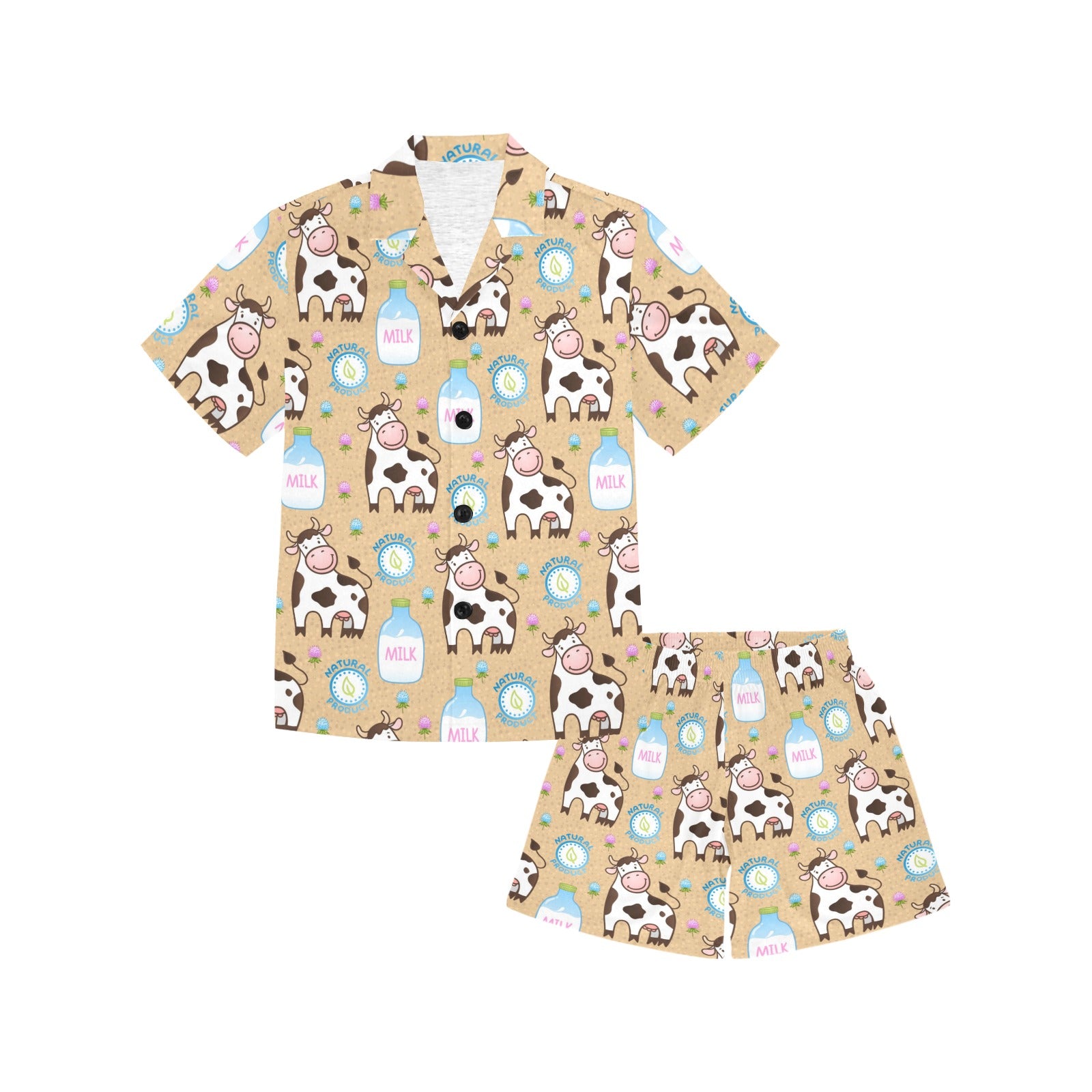 Cow bottle of milk pattern Kids' Boys' Girls' V-Neck Short Pajama Set