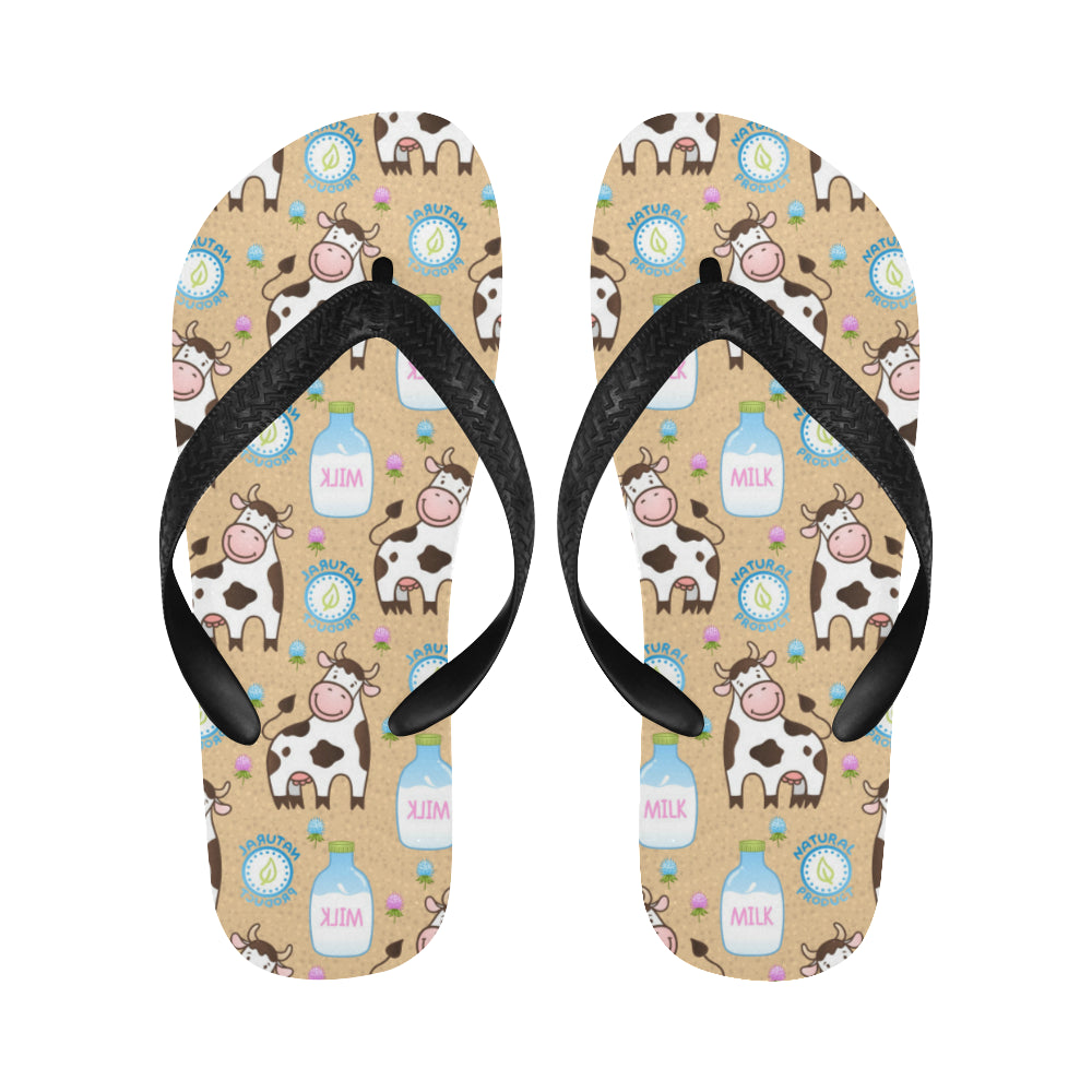 Cow bottle of milk pattern Unisex Flip Flops is a uniqued design and limited item. It made to order, hand printed, and sewn with love in our factory.