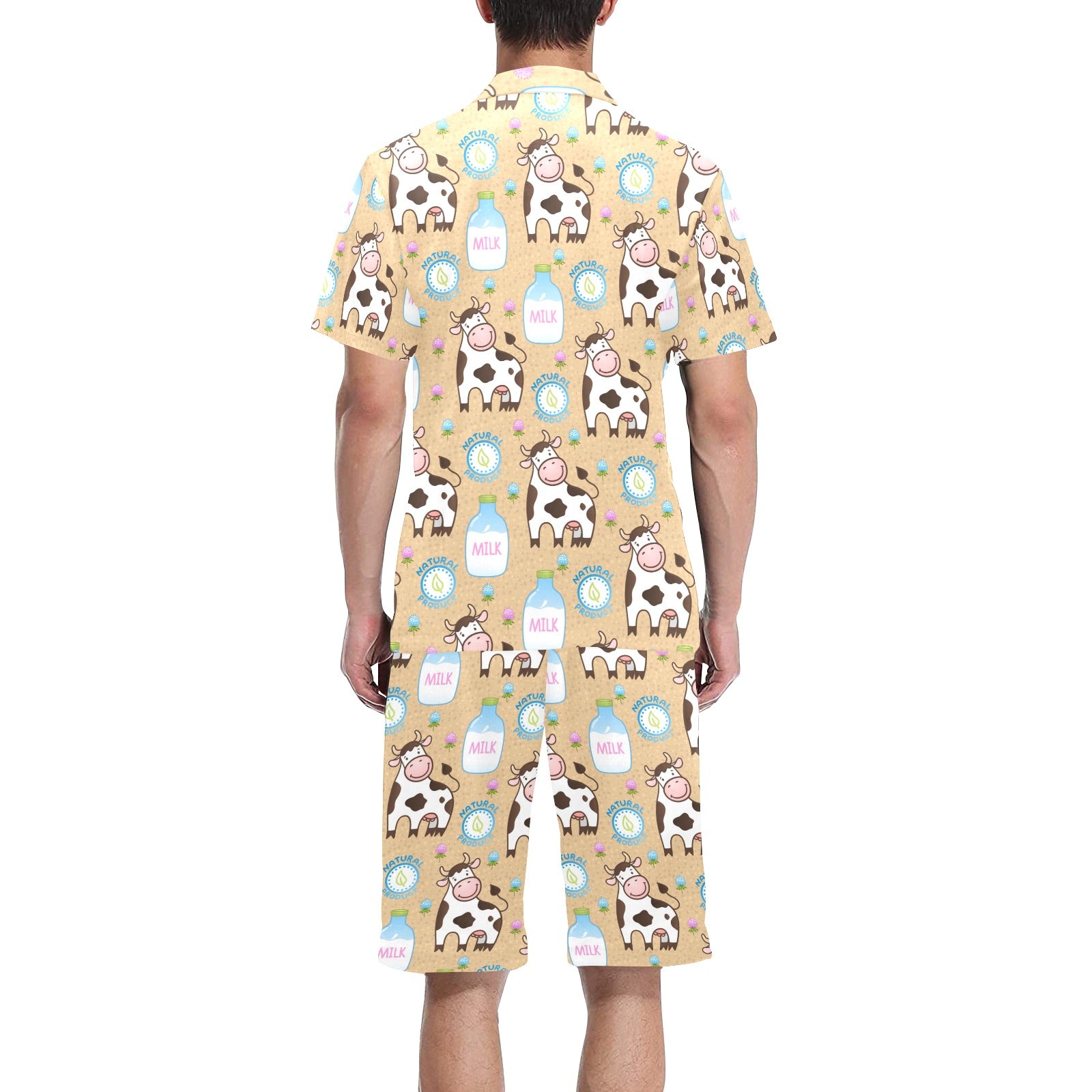 Cow bottle of milk pattern Men's V-Neck Short Pajama Set
