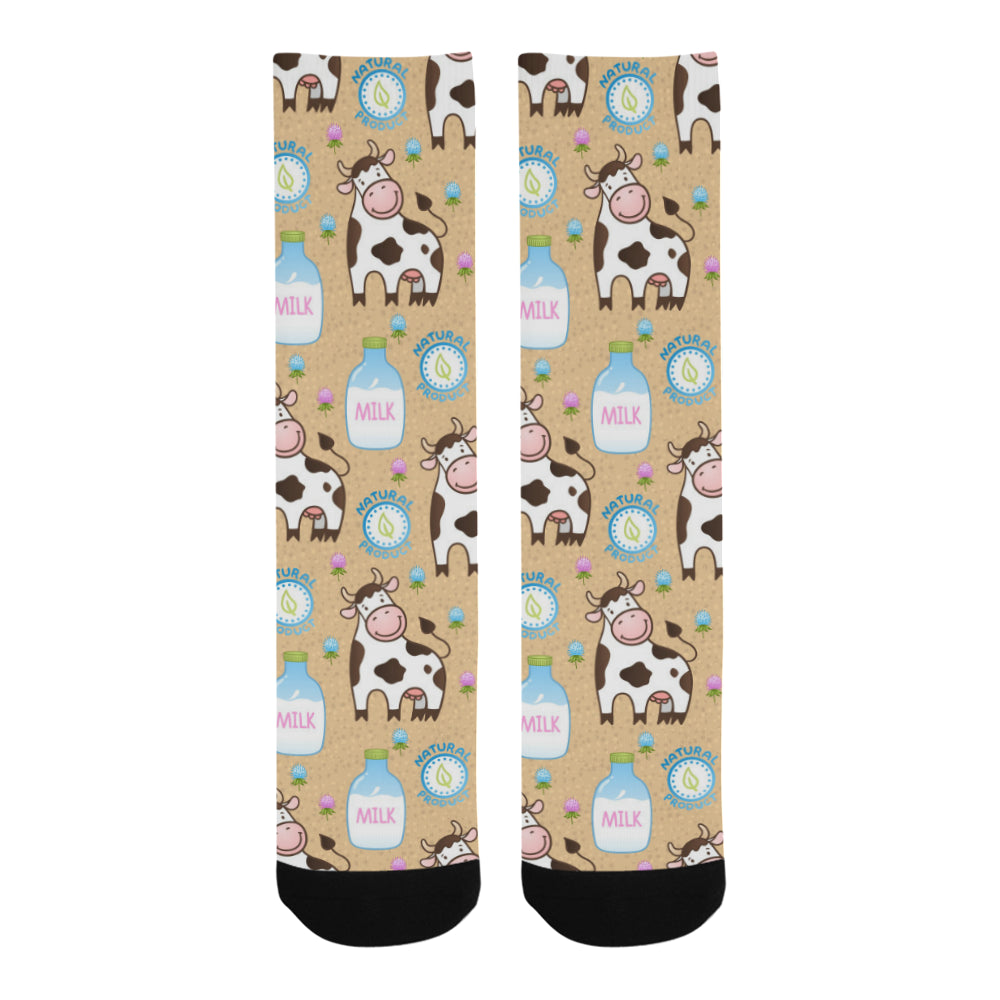Cow bottle of milk pattern Crew Socks are uniqued design and limited item. It made to order, hand printed, and sewn with love in our factory.