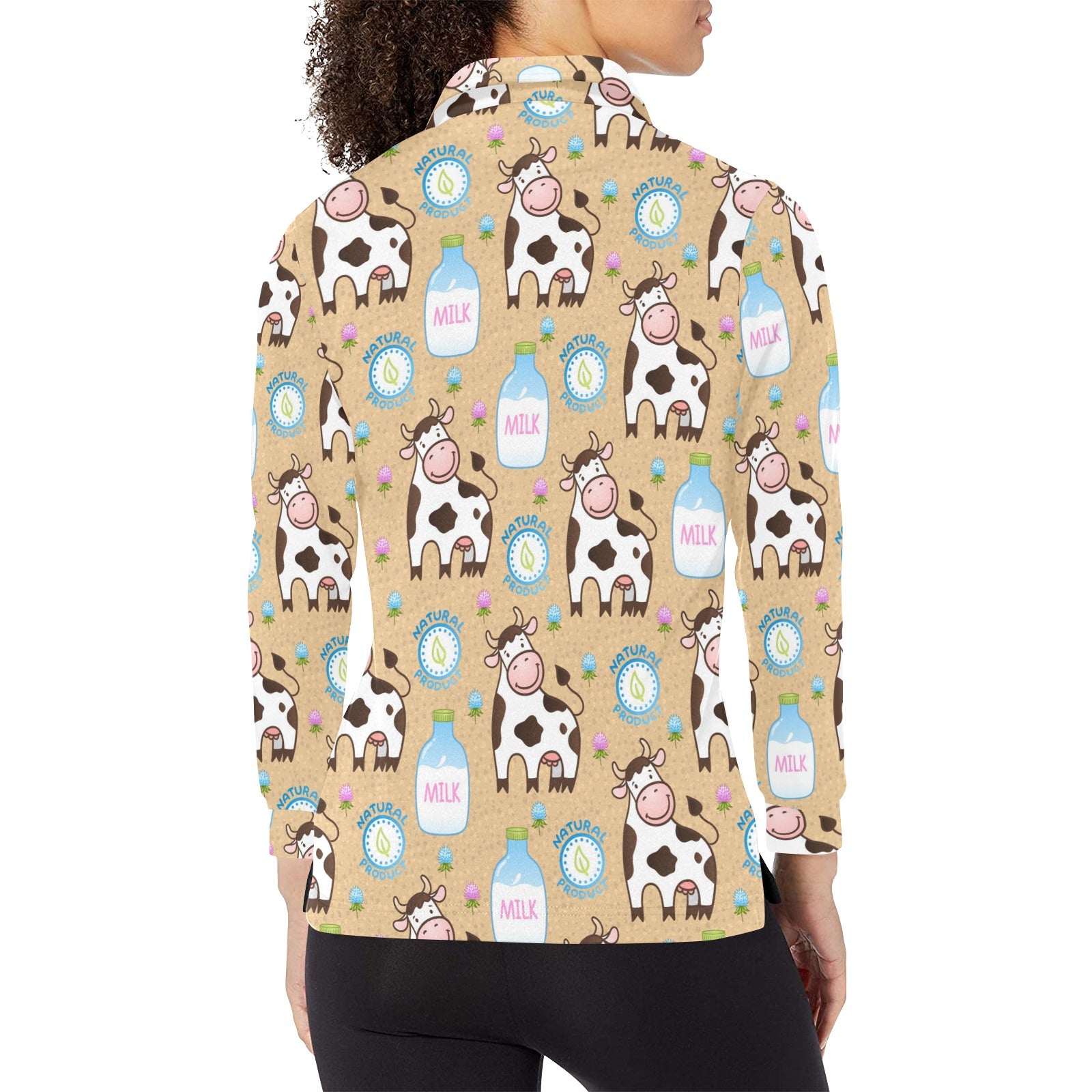 Cow bottle of milk pattern Women's Long Sleeve Polo Shirt