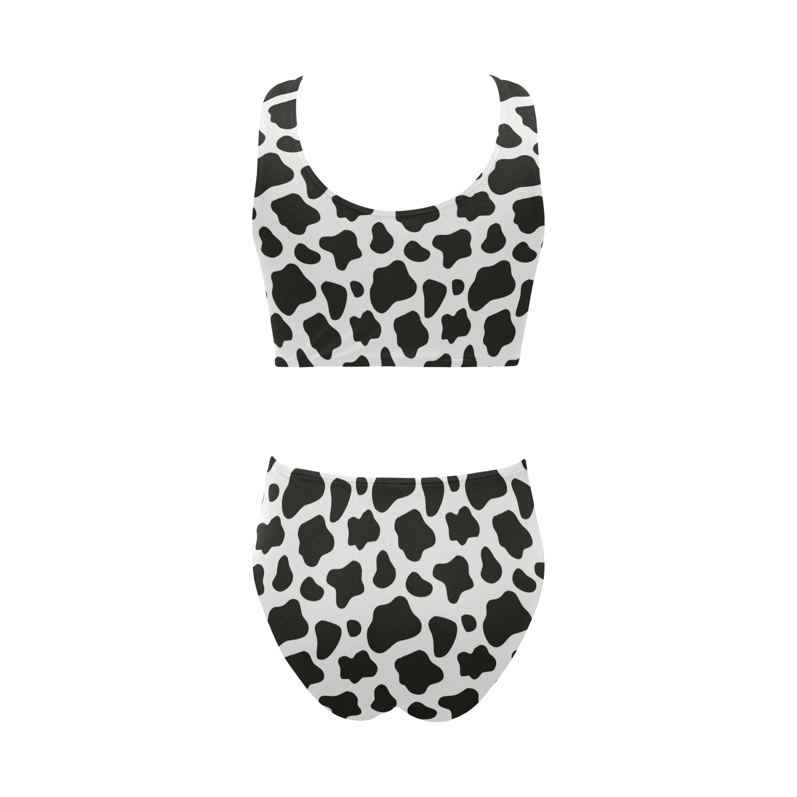 Cow skin pattern Chest Bowknot High Waisted Bikini Swimsuit