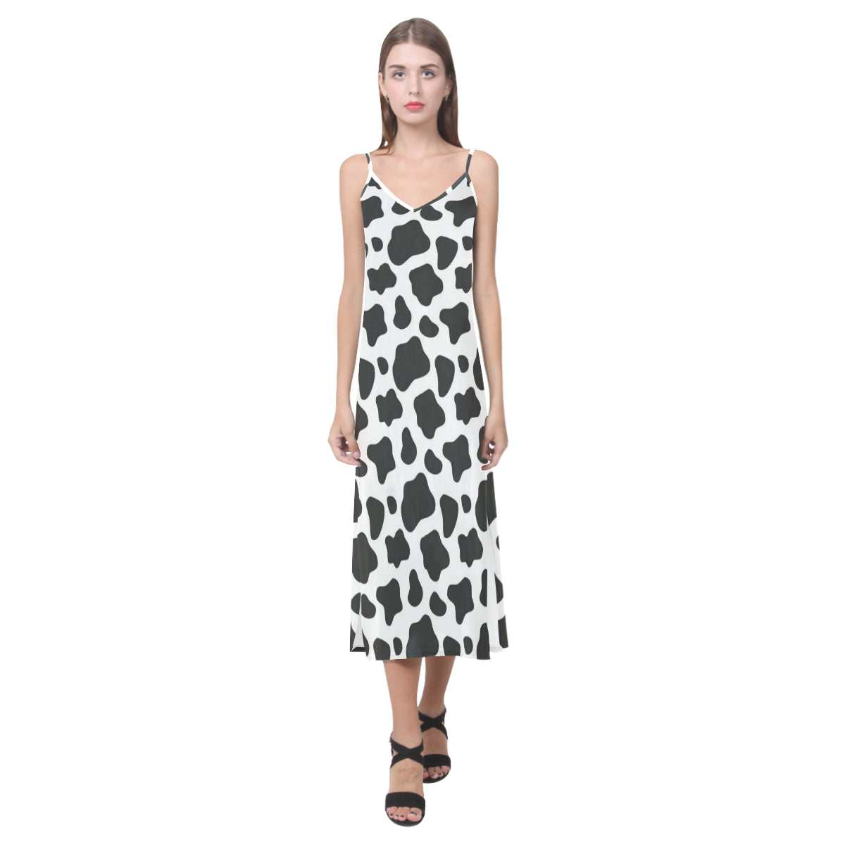 Cow skin pattern V-Neck Open Fork Long Dress is a uniqued design and limited item. It made to order, hand printed, and sewn with love in our factory.