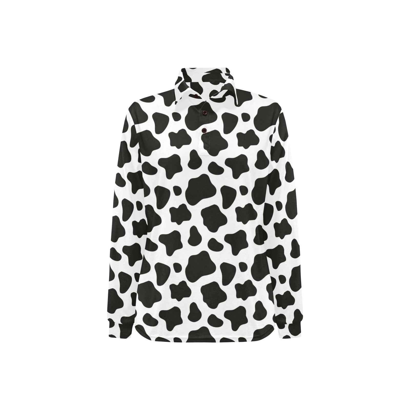 Cow skin pattern Women's Long Sleeve Polo Shirt