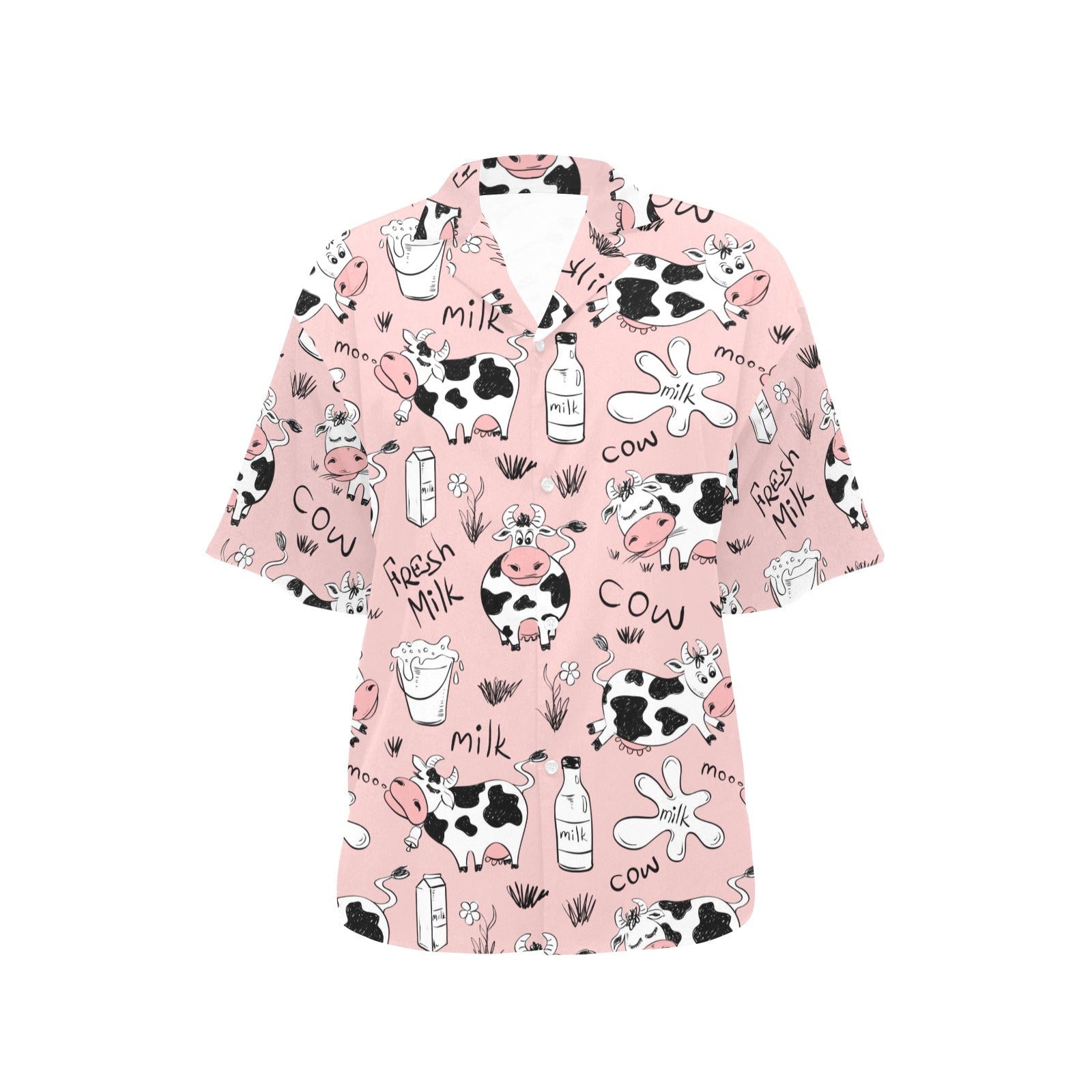 Cows milk product pink background Women's All Over Print Hawaiian Shirt