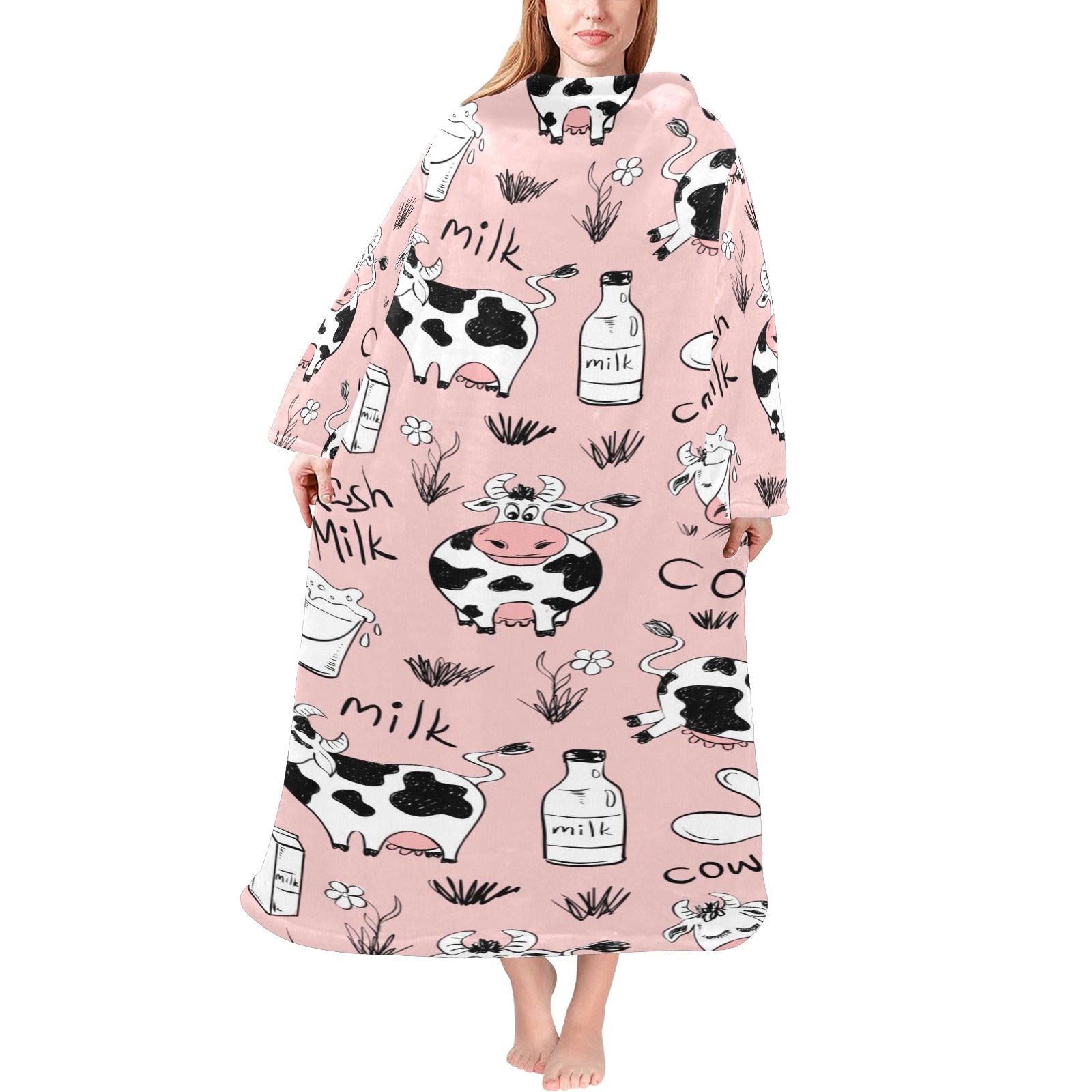Cows milk product pink background Blanket Robe with Sleeves