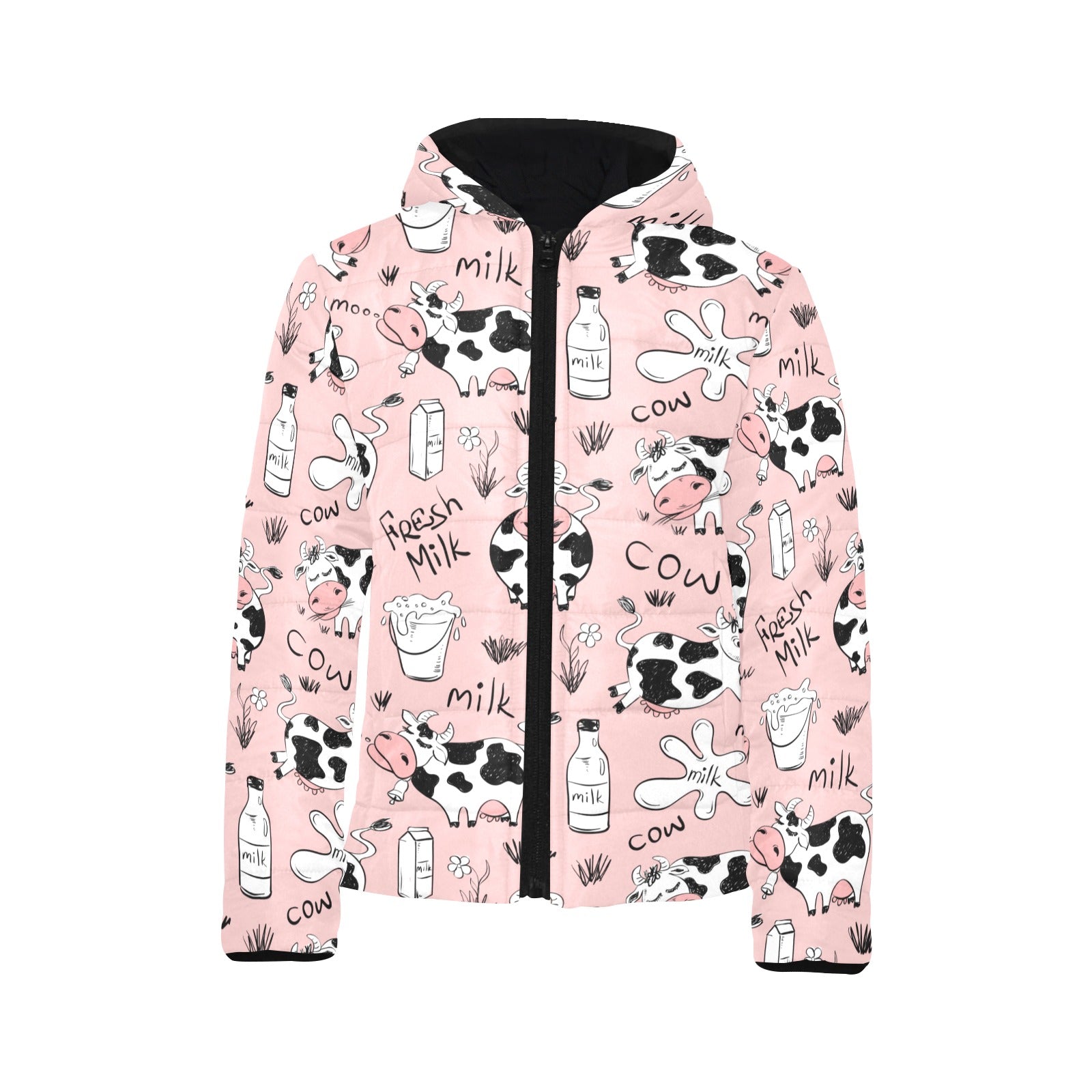 Cows milk product pink background Kids' Boys' Girls' Padded Hooded Jacket