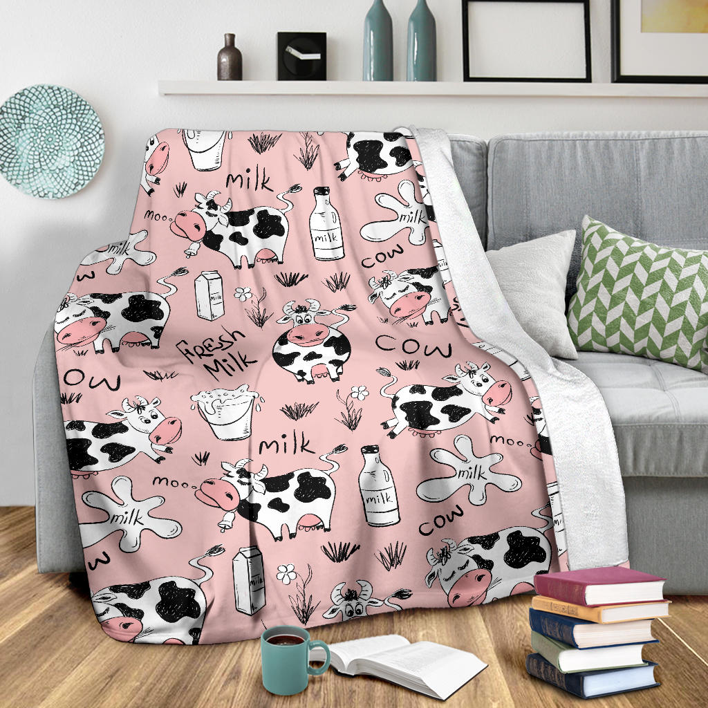 Cows milk product pink background Premium Blanket is a uniqued design and limited item. It made to order, hand printed, and sewn with love in our factory.