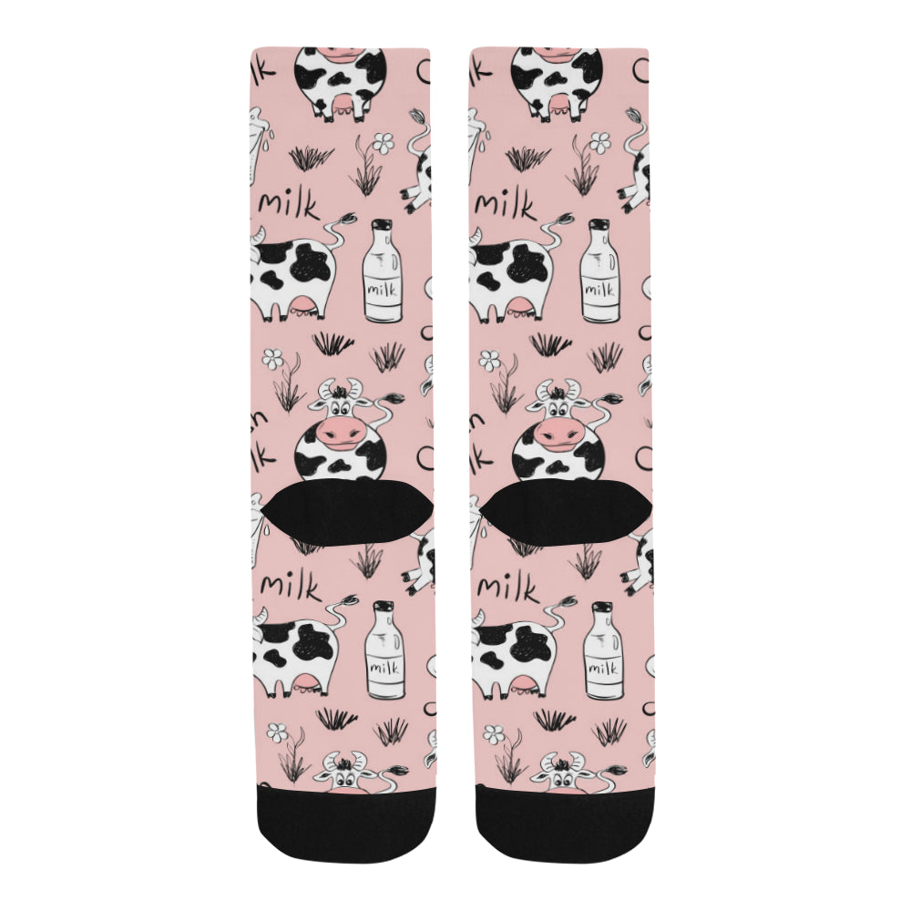 Cows milk product pink background Crew Socks are uniqued design and limited item. It made to order, hand printed, and sewn with love in our factory.