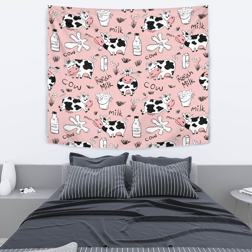 Cows milk product pink background Tapestry is a uniqued design and limited item. It made to order, hand printed, and sewn with love in our factory.