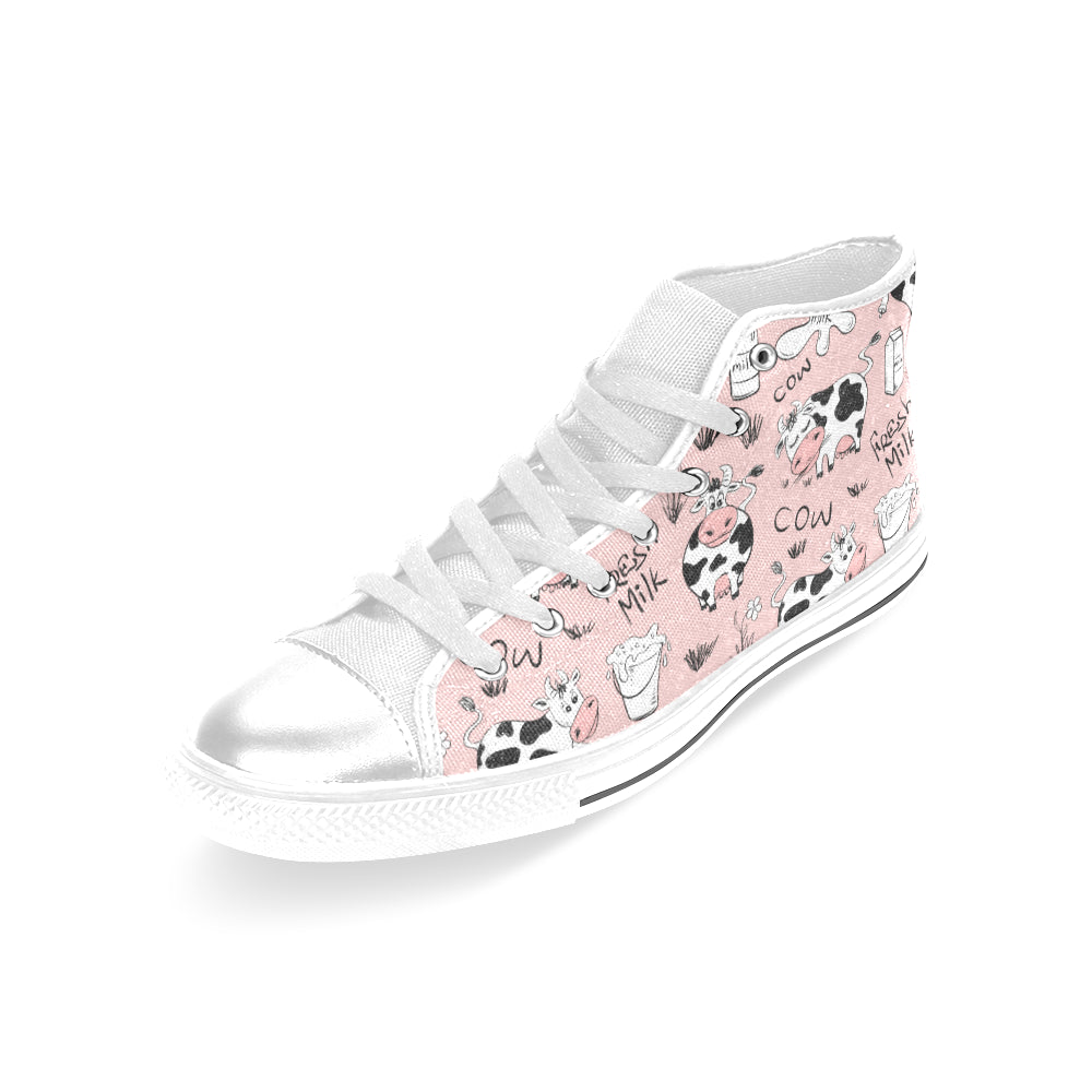 Cows milk product pink background Women's High Top Canvas Shoes White