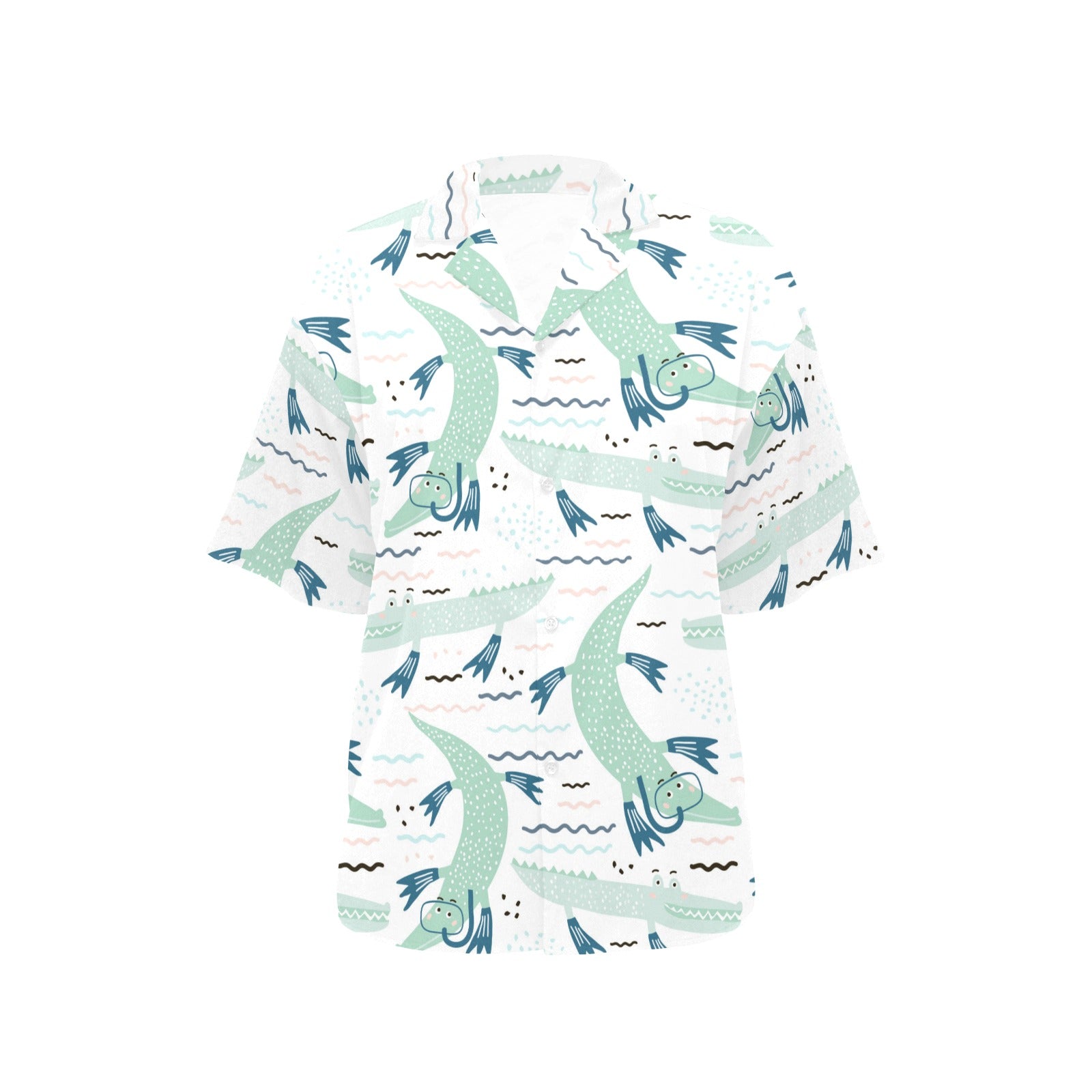 Crocodile diver pattern Women's All Over Print Hawaiian Shirt