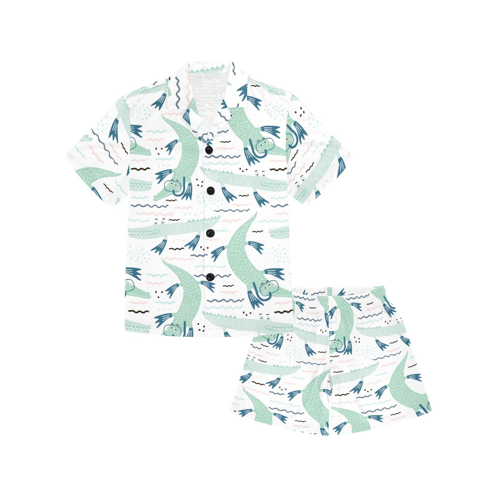 Crocodile diver pattern Kids' Boys' Girls' V-Neck Short Pajama Set
