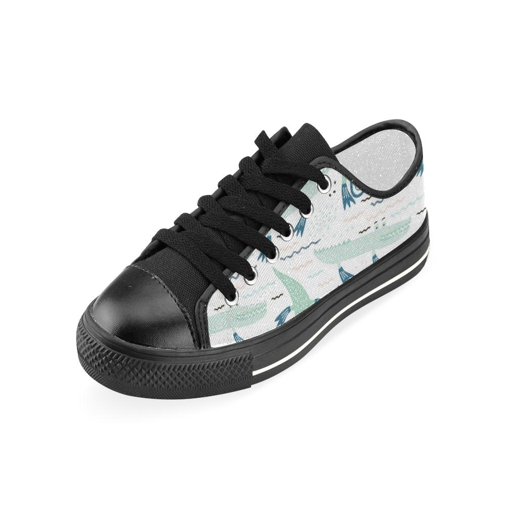 Crocodile diver pattern Kids' Boys' Girls' Low Top Canvas Shoes Black