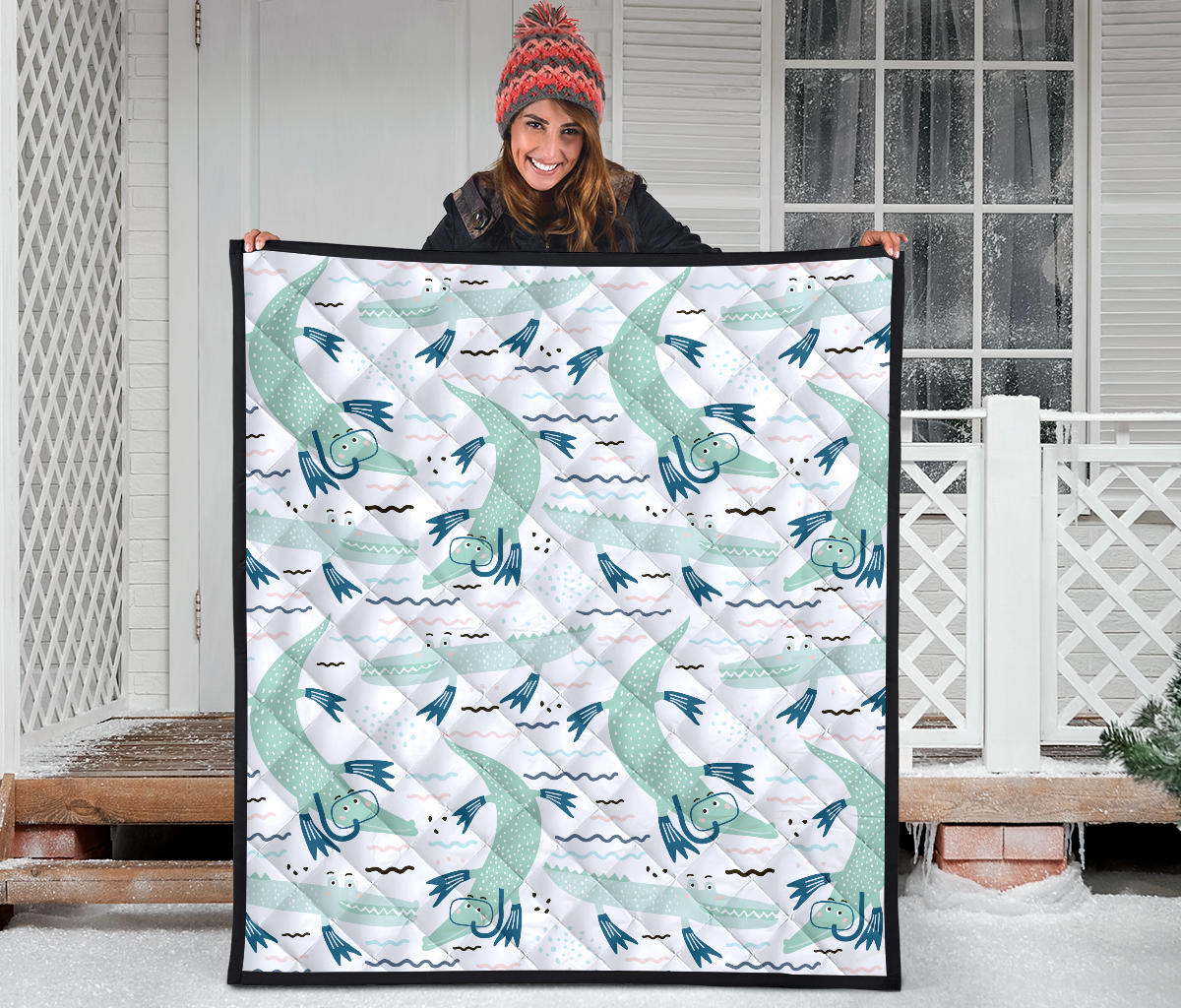 Crocodile Diver Pattern Premium Quilt is a uniqued design and limited item. It made to order, hand printed, and sewn with love in our factory.