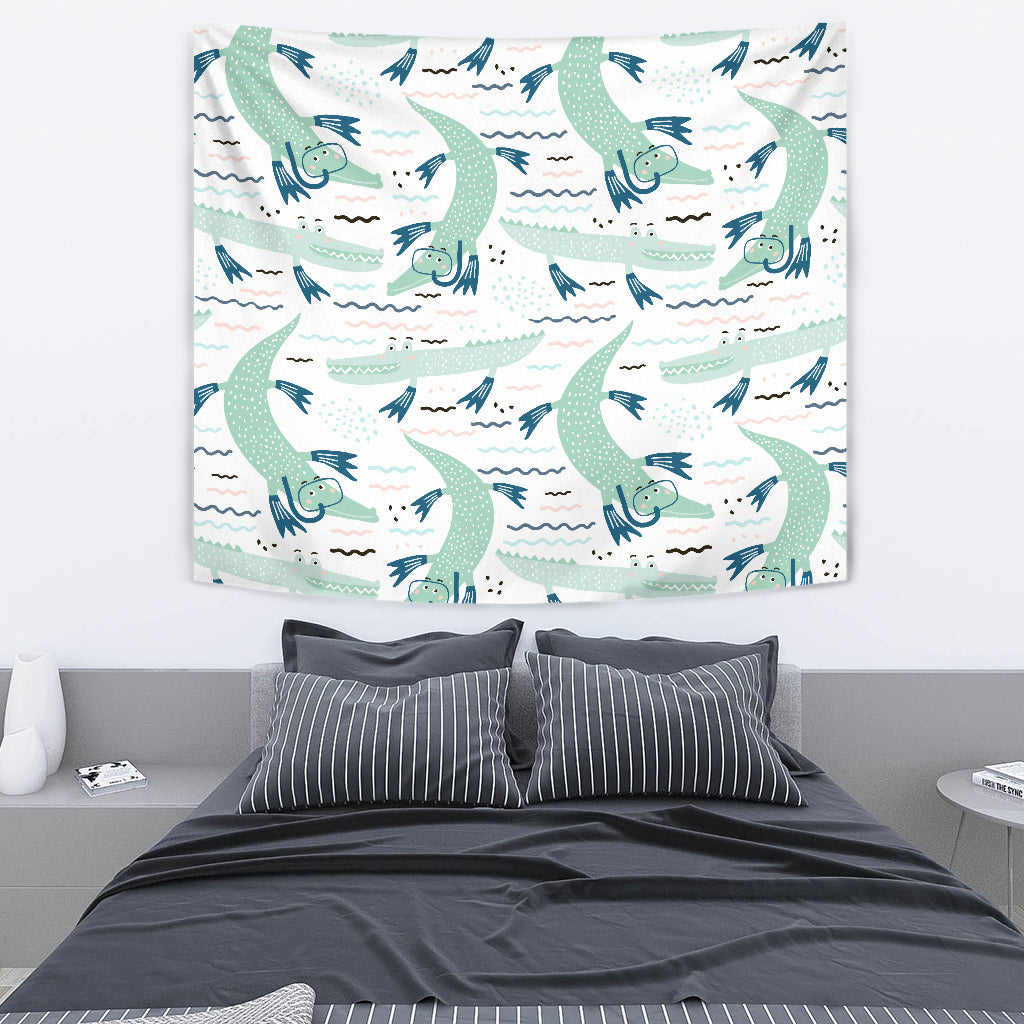 Crocodile diver pattern Tapestry is a uniqued design and limited item. It made to order, hand printed, and sewn with love in our factory.