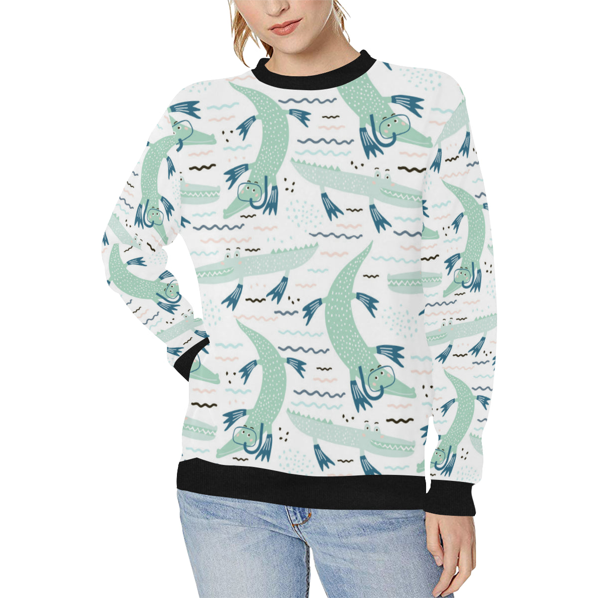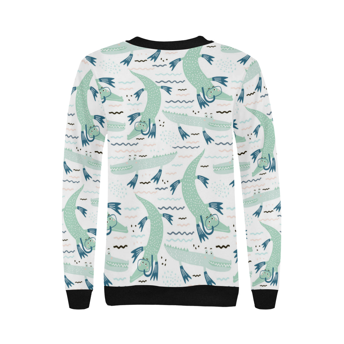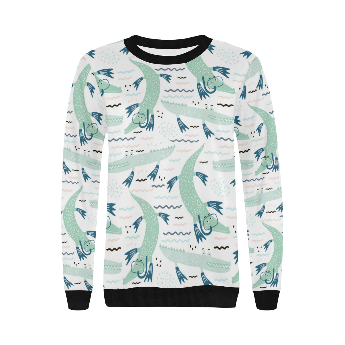 Crocodile diver pattern Women's Crew Neck Sweatshirt